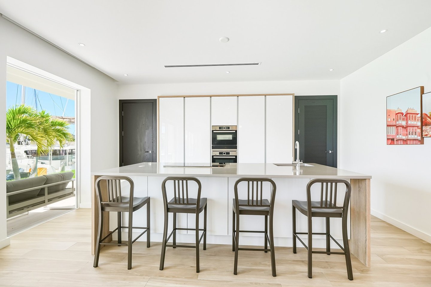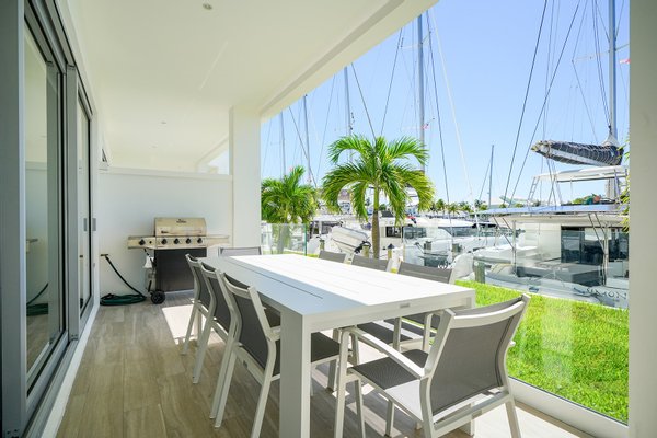 Genießen Sie den ultimativen Insellebensstil in dieser Endeinheit im Erdgeschoss von One Marina, Palm Cay. Ideal für Privatsphäre und Bequemlichkeit gelegen, bietet Unit 204 nahtloses Leben im Innen- und Außenbereich mit direktem Zugang zum