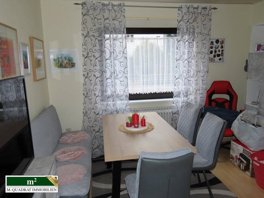 Die EG-Wohnung besticht durch eine geräumige und vorteilhafte Anordnung. Die mit maßgefertigten Einbauelementen ausgestattete Küche, das daran angrenzende Gäste-WC und das erste Zimmer, das sowohl als Wohn-, als auch Schlafraum genutzt werden kann, sind zur Straßenseite ausgerichtet. Folgt man dem Korridor vor Kopf, betritt man den Eßbereich mit ausreichend Platz für eine mehrköpfige Familie.