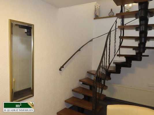 Ebenfalls aus dem Wohnzimmer heraus kann man den Garten über eine siebenstufige Treppe betreten.