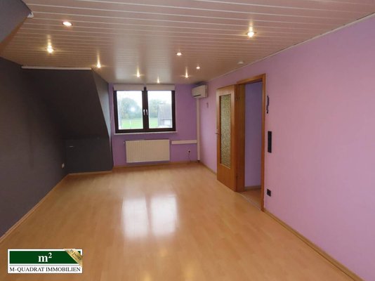 Wiederum zurück im Treppenhaus gelangt man über eine zweiviertelgewendelte Treppe die DG-Wohnung. Während ein separates Schlaf-/ Kinderzimmer und das Bad zur Straße ausgerichtet sind, befindet sich die Küche an der Gartenseite. Der vor Kopf befindliche große Wohnraum ist sowohl zur West-, als auch Ostseite befenstert, wodurch er sehr hell ausgeleuchtet ist. Die DG-Wohnung verfügt über eine eigene Klimaanlage. Die Warmwasser-Versorgung ist im Gegensatz zu den unteren Wohnungen über Durchlauferhitzer geregelt.