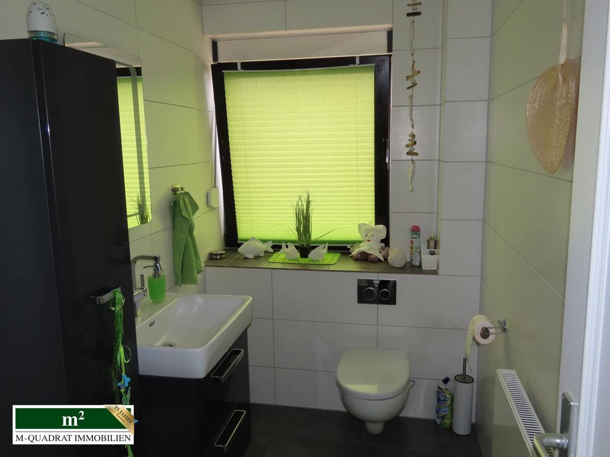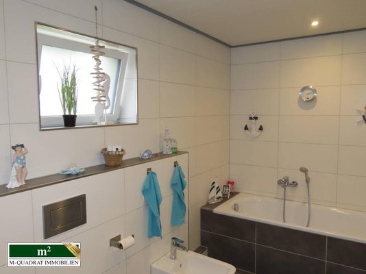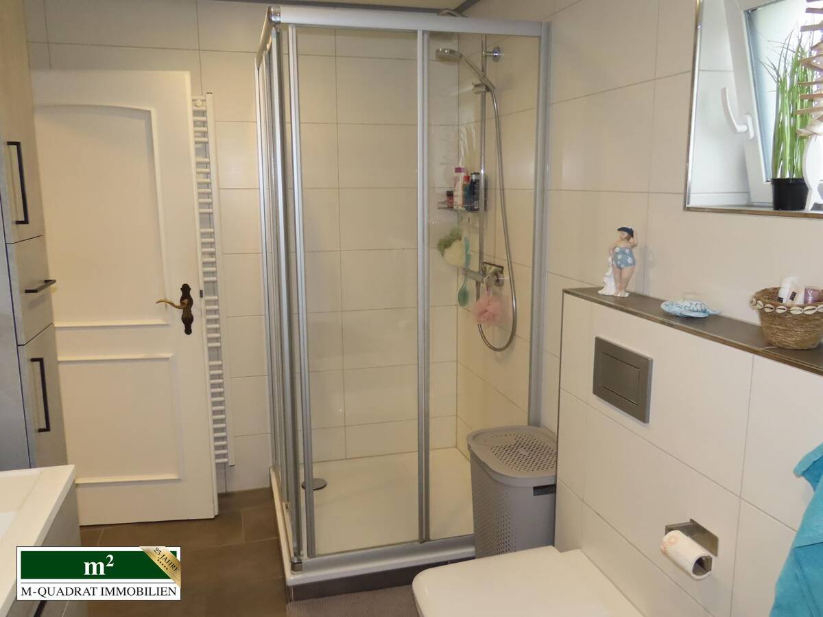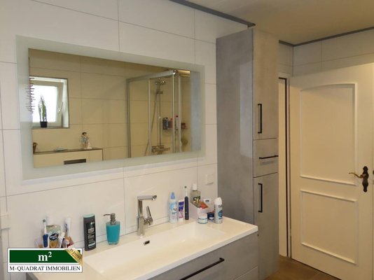 Überwiegende Teile der EG- und I. OG-Wohnung sind mit hochwertigen und abriebfesten Fliesen verlegt. Die Bäder beider Wohnungen sind modern und auf dem neuesten Stand. Neben den jeweiligen Einbauküchen im EG und DG können auch die Badezimmermöbel übernommen werden.
