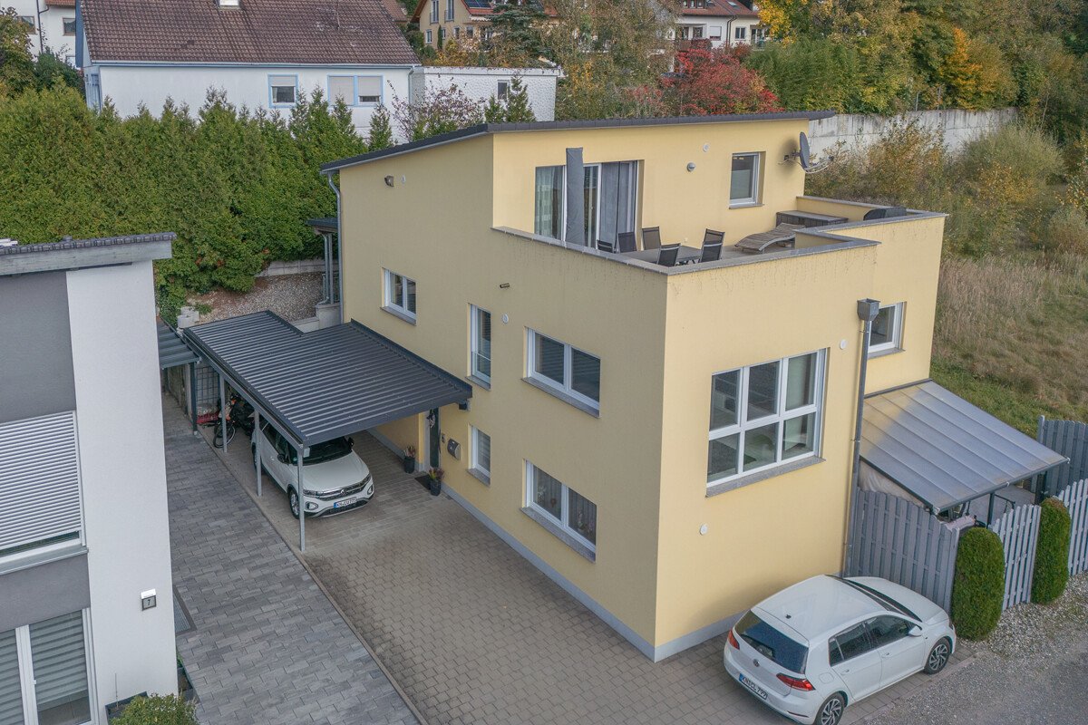 Das moderne und energetisch perfekt ausgestattete Zweifamilienhaus verfügt im Erdgeschoß über eine 3,5 Zimmer Wohnung mit 94 qm Wohnfläche. Das erste Obergeschoß verfügt über ein 1 Zimmer Appartement mit ca. 20 qm Wohnflächen eine 4 Zimmer Maisonette Wohnung mit ca. 135 qm Wohnfläche.