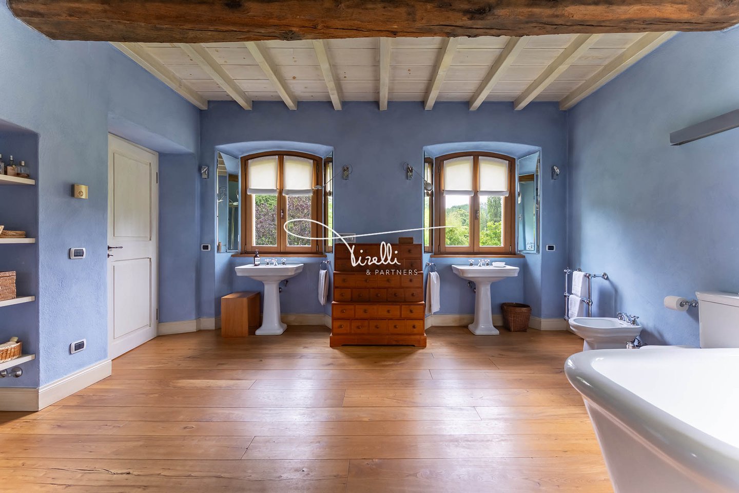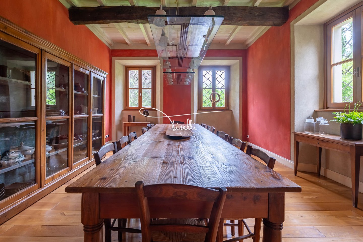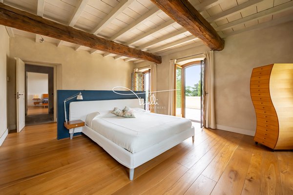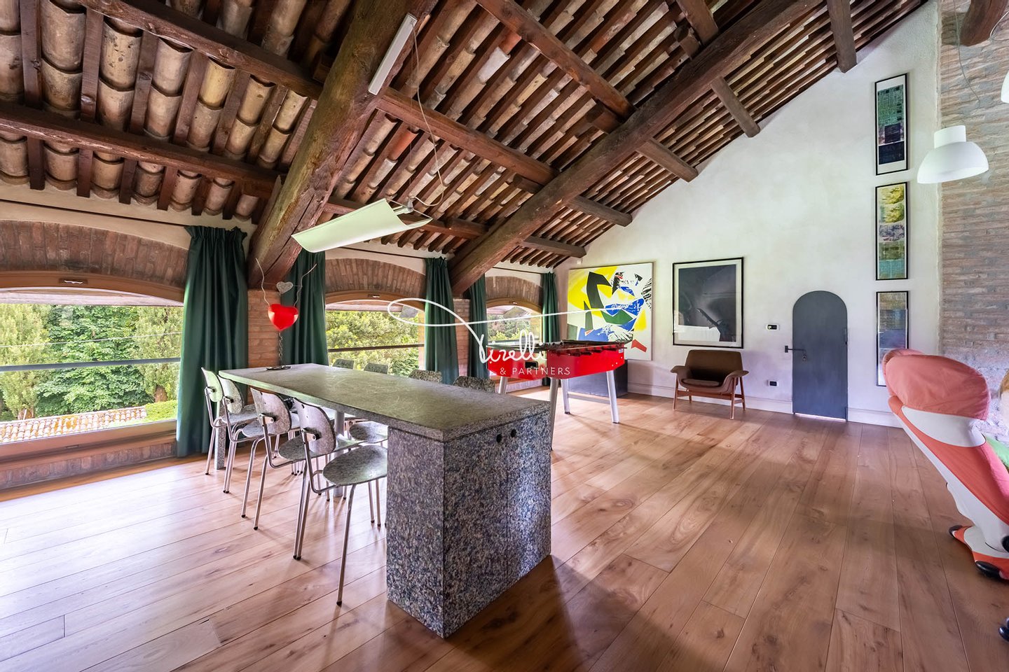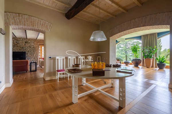 Downstairs, everything speaks of togetherness. Picture it: your child’s birthday, laughter echoing from room to room; a quiet winter afternoon wrapped in warmth, with the scent of logs in the fireplace mingling with the sweetness of something baking in the oven; summer evenings that begin with dinner under the wisteria and end with quiet conversations by the pool, under the stars. Even the simplest days feel different here—more natural, more yours.
