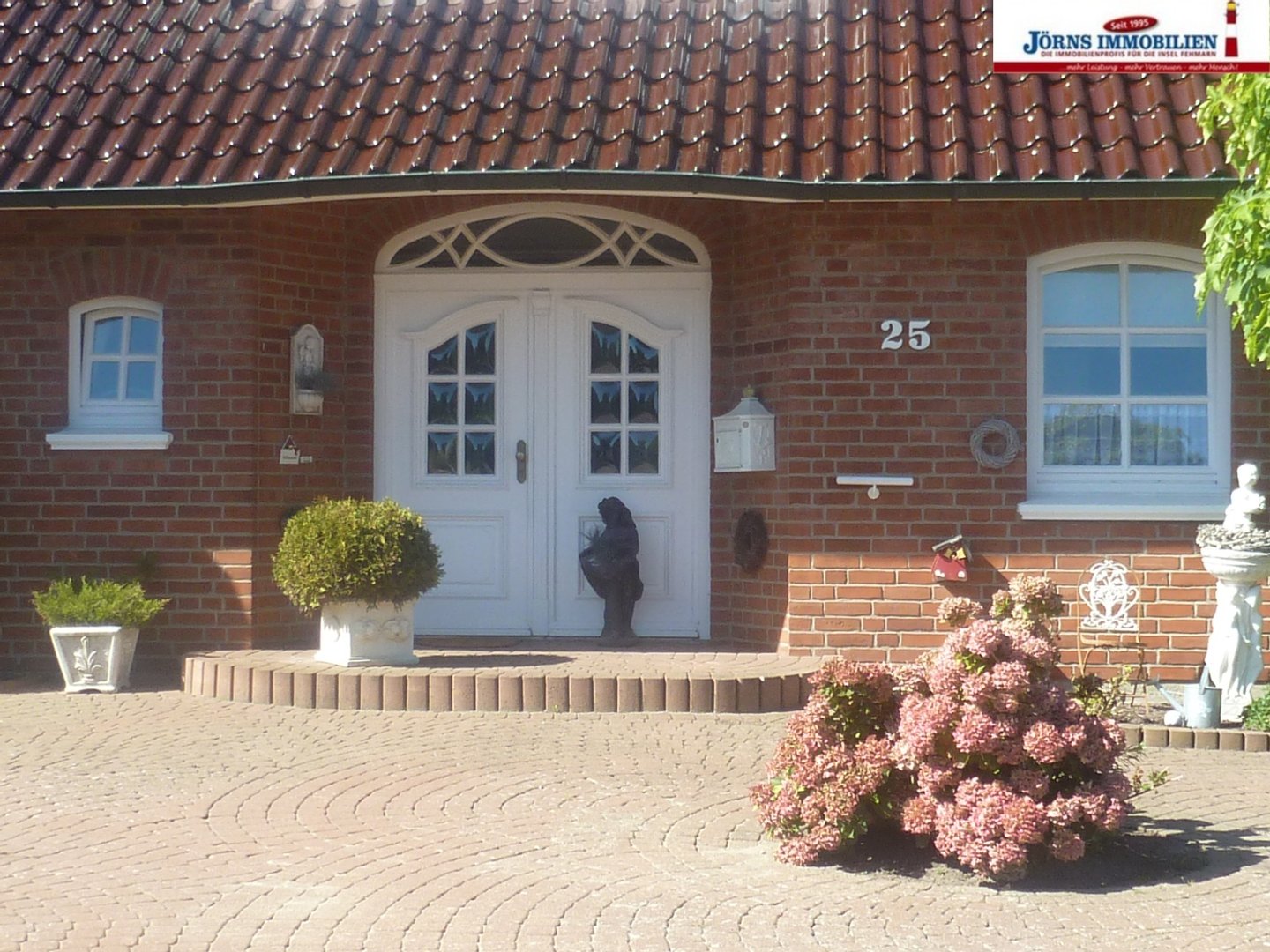 Bereits auf den ersten Blick überzeugt die Immobilie mit ihrer unverwechselbarer roten Klinkerfassade, den glasierten Dachpfannen mit formschönen Gauben und einer zum Baustil passenden Garage. Terrasse, Garten und der überdachte Eingangsbereich mit gepflastertem Vorplatz bieten Behaglichkeit und runden das Erscheinungsbild des Hauses ab. Im Inneren empfängt Sie ein heller, großzügiger Eingangsbereich mit Windfang und geschwungener Treppe. Die verglaste Doppelflügeltür verleihen dem Raum eine elegante, luftige Atmosphäre. Das gesamte Raumkonzept ist zum Teil offen gestaltet. Im Erdgeschoss bildet der ca. 56 m² große Wohn- und Essbereich das Herzstück des Hauses – mit zum Teil bodentiefen Fenstern und direktem Zugang zur überdachten Terrasse. Ein Kachelofenkamin sorgt für Gemütlichkeit. Die Küche ist durch einen praktischen Vorrats- und Verbindungsgang mit Einbauschränken direkt an die Garage angebunden – ein durchdachtes Detail für den Alltag. Ergänzt wird das Raumangebot auf dieser Ebene durch ein Schlafzimmer, ein Büro ein Gäste-WC, sowie ein helles Duschbad. Ein weiteres Highlight stellt die großzügige Wohnung im Dachgeschoss mit einer Wohnfläche von ca. 100m² dar. Der Teilkeller verfügt über einen Hauswirtschaftsraum, einen Abstellraum und den Heizungsraum mit Tanklager. Die Heizungsanlage von Brötje, wurde 2024 erneuert.