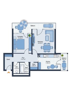 - ca. 24 m² großes Wohn/Esszimmer mit Zugang zur nach Süden gelegenen Loggia