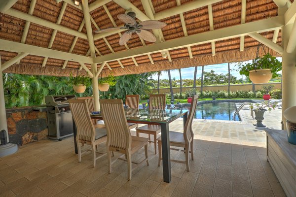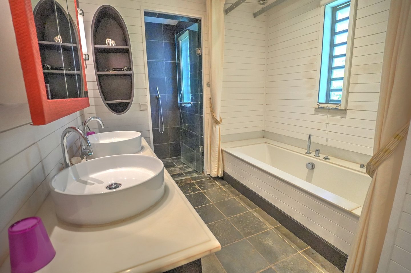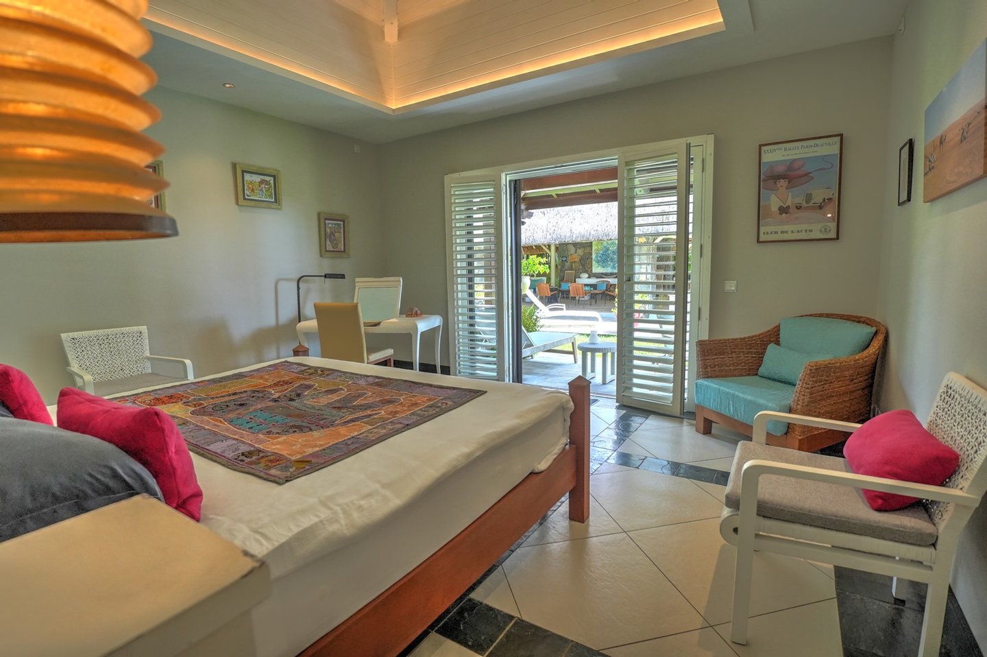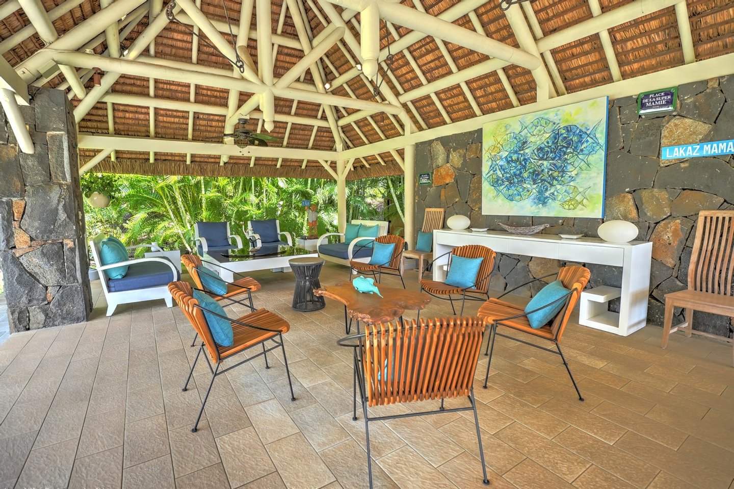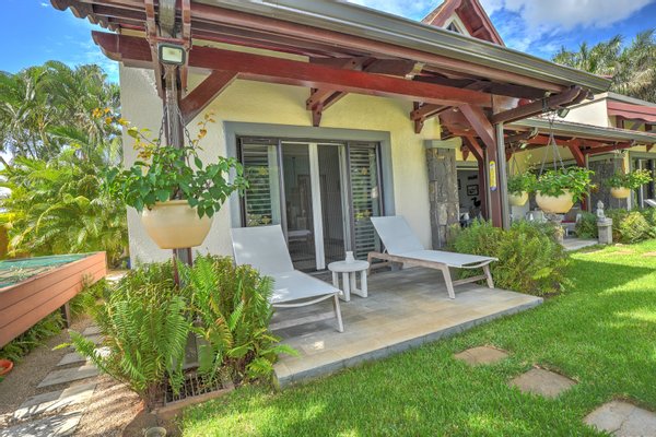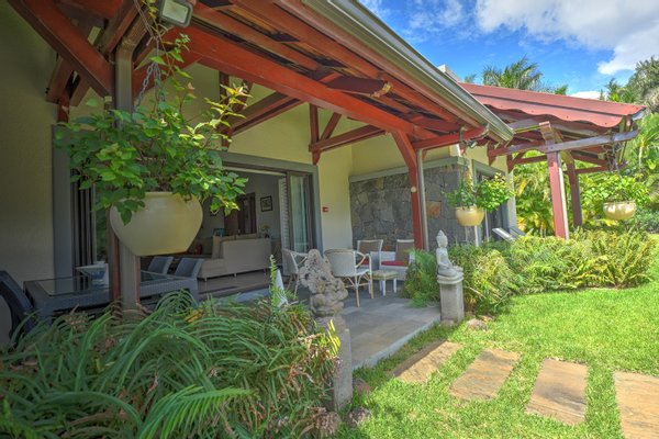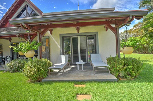 Die lokale Architektur und die raffinierte Dekoration bestätigen den außergewöhnlichen Charakter dieses Anwesens. Diese von dem mauritischen Architekten Jean-Michel d'Unienville auf einer Ebene gebaute Villa ist voll möbliert und verfügt über einen herrlichen Swimmingpool, einen Whirlpool und einen privaten Garten, ganz zu schweigen von der traditionellen mauritischen Veranda.