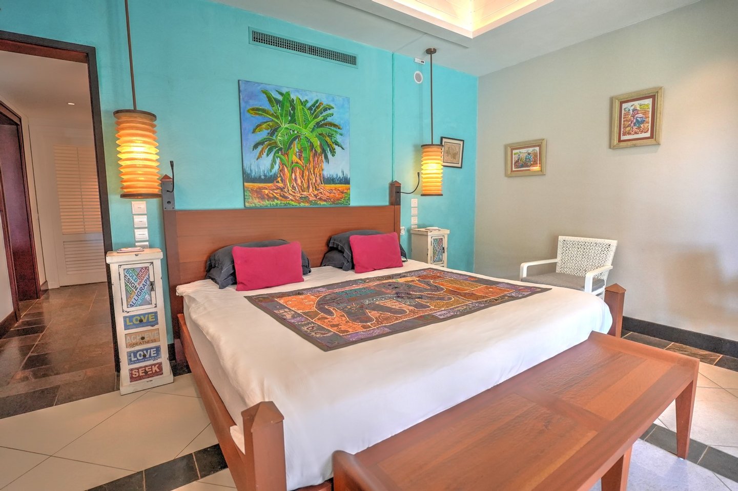Die Einrichtung ist elegant und harmonisch, inspiriert von der Verschmelzung der mauritischen Kultur mit afrikanischen, asiatischen und indischen Einflüssen, um geräumige Volumina in Licht und Farbe zu präsentieren. Eine Einrichtung, die jede Familie in eine ruhige und exotische Umgebung eintaucht...