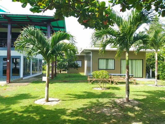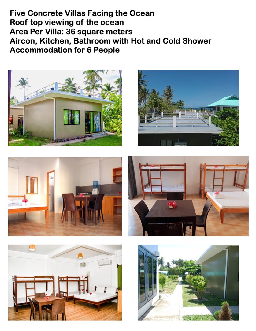 2. Fünf Villen am Strand: Entdecken Sie auf der 3000 Quadratmeter großen Fläche dieses Anwesens fünf sorgfältig gestaltete Betonvillen. Jede Villa verfügt über eine Dachterrasse, ein eigenes Bad, eine voll ausgestattete Küche, einen Kühlschrank, einen Herd, eine Klimaanlage und eine luxuriöse Warm- und Kaltdusche. Diese Villen sind der Inbegriff von Komfort und Bequemlichkeit.