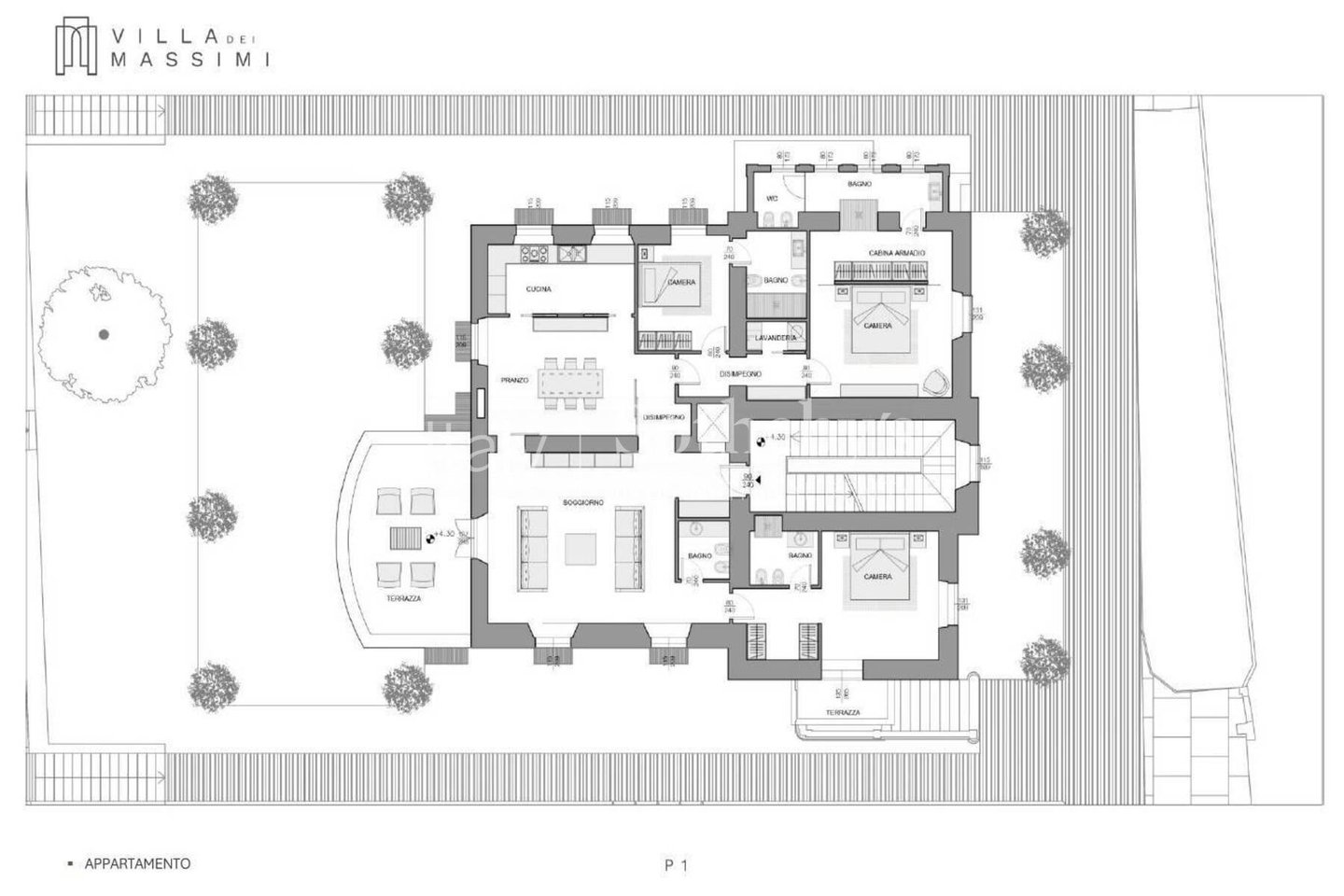 Im Herzen von Balduina, einem der exklusivsten Stadtviertel Roms, befindet sich diese elegante Wohnung mit 200 m² Wohnfläche und 32 m² bewohnbaren Terrassen im ersten Stock der historischen Villa dei Massimi, einer eleganten Residenz aus dem Jahr 1922, eingebettet in die herrliche Kulisse des Monte Mario.