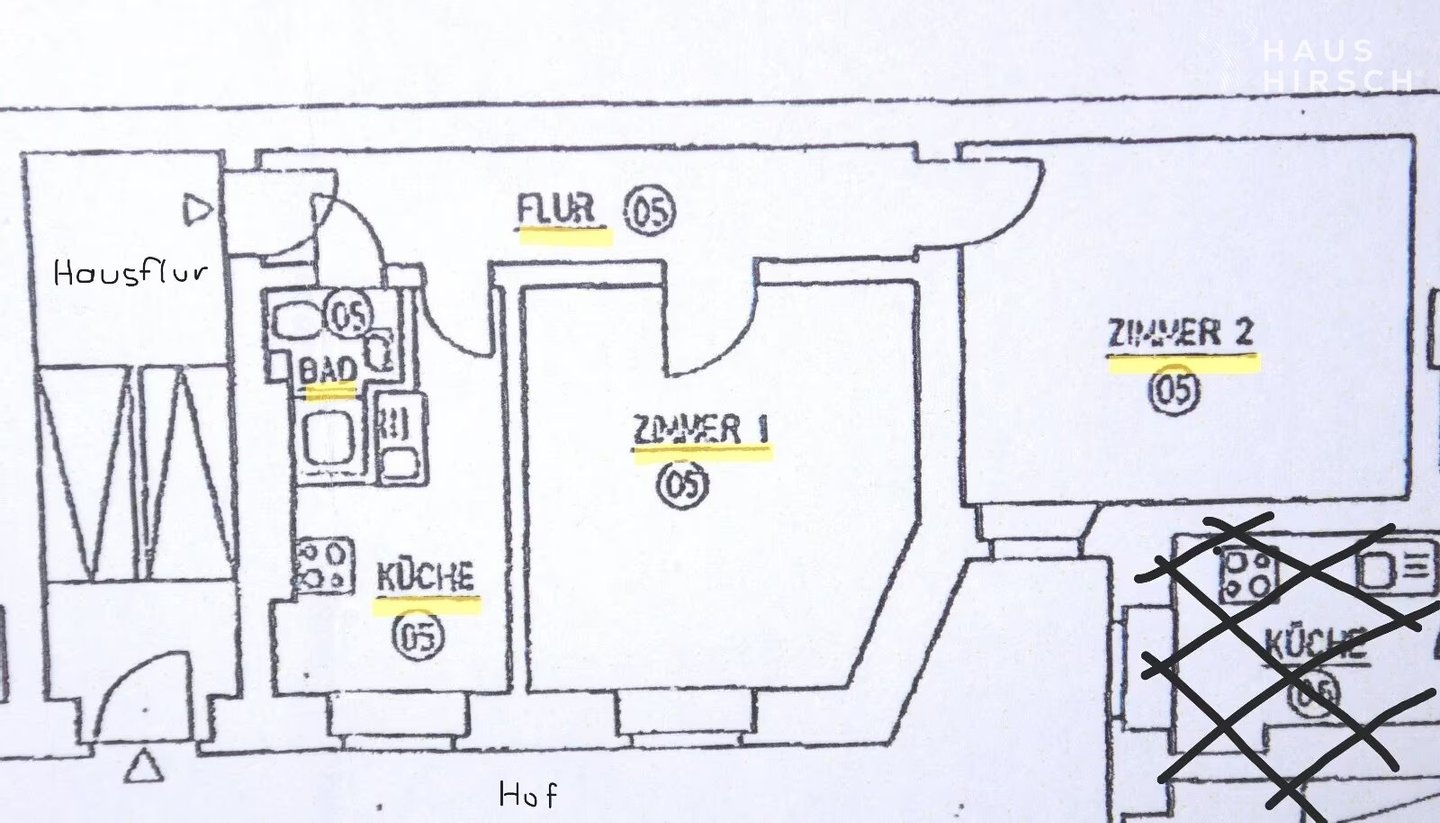 Diese 2-Zimmer-Eigentumswohnung in der ersten Etage (Hochparterre) befindet sich in einem Altbau-Gebäude aus dem Baujahr 1918. Die Wohnfläche beträgt 52 m² und umfasst ein Schlafzimmer, ein Badezimmer und eine hochwertige Einbauküche. Zur Wohnung