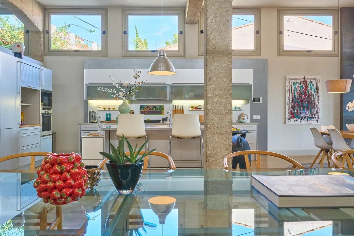 Im Herzen des charmanten Dorfes Gènova gelegen, verbindet dieses Stadthaus, das in einen Bodenloft umgebaut wurde, einen industriellen Charakter mit modernem Komfort. Ursprünglich ein Industriegebäude, wurde das Anwesen sorgfältig in einen geräumigen