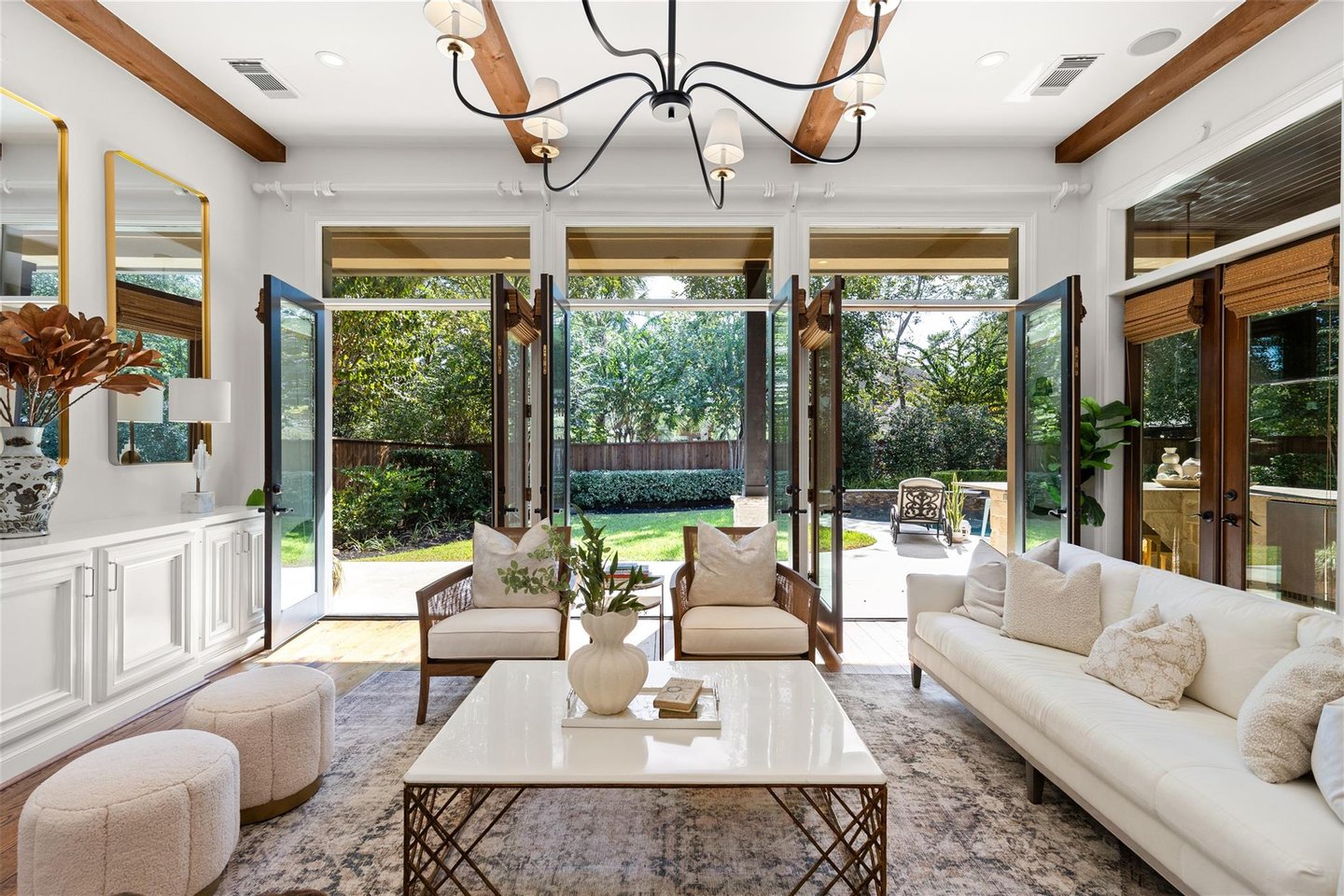 Woodlands Showstopper mit atemberaubender architektonischer und gestalterischer Qualität, privatem Hinterhof-Refugium mit/2018 Pool, Spa, Feuerstelle, überdachter Sommerküche und Veranda mit ferngesteuerten Jalousien und Heizung. Die Übergangseinrichtung strahlt Charme und Eleganz aus. Natürliches Licht erhellt das gesamte Haus und verfügt über maßgeschneiderte Leuchten in jedem Raum. Hohe Decken/Wände wurden auf mattglänzendes Finish der Klasse 5 geglättet. Handwerkskunst auf europäischem Niveau im Jahr 2024 Küche mit geriffelten Paneelschränken, unlackierten Goldbeschlägen und GE Cafe Kühlschrank und Geräten. "Texas meets California" Familienzimmer mit drei französischen Türen, die den Wohnraum nach draußen erweitern. Die magazinreife Primary Suite verfügt über einen sehenswerten Badewannenbereich und begehbare Kleiderschränke für Sie und Ihn. Das Haus verfügt über ein Arbeitszimmer/eine Bibliothek, ein formelles Wohnzimmer, ein formelles Ess- und Spielzimmer. Die 2. Etage verfügt über 3 komplett renovierte Schlafzimmer und Bäder. Großer MUD- und Hauswirtschaftsraum neben der Garage mit Epoxidböden und Gästebad. Professionell angelegt, Außenfarbe 2025 und Generator für das ganze Haus. Geschmackvoll, zeitlos und schlüsselfertig.