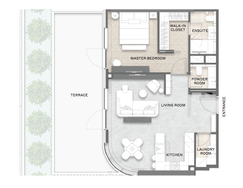 Willkommen in Ihrem zukünftigen Zuhause! Treten Sie ein in diese wunderschöne 1-Zimmer-Wohnung und lassen Sie sich von den zahlreichen Annehmlichkeiten begeistern. Beginnen Sie Ihren Tag mit einer entspannten Yoga-Session auf dem Outdoor-Yogadeck, während die Sonne langsam aufgeht. Ihre Kinder werden den Spielbereich lieben, der speziell für sie gestaltet wurde.