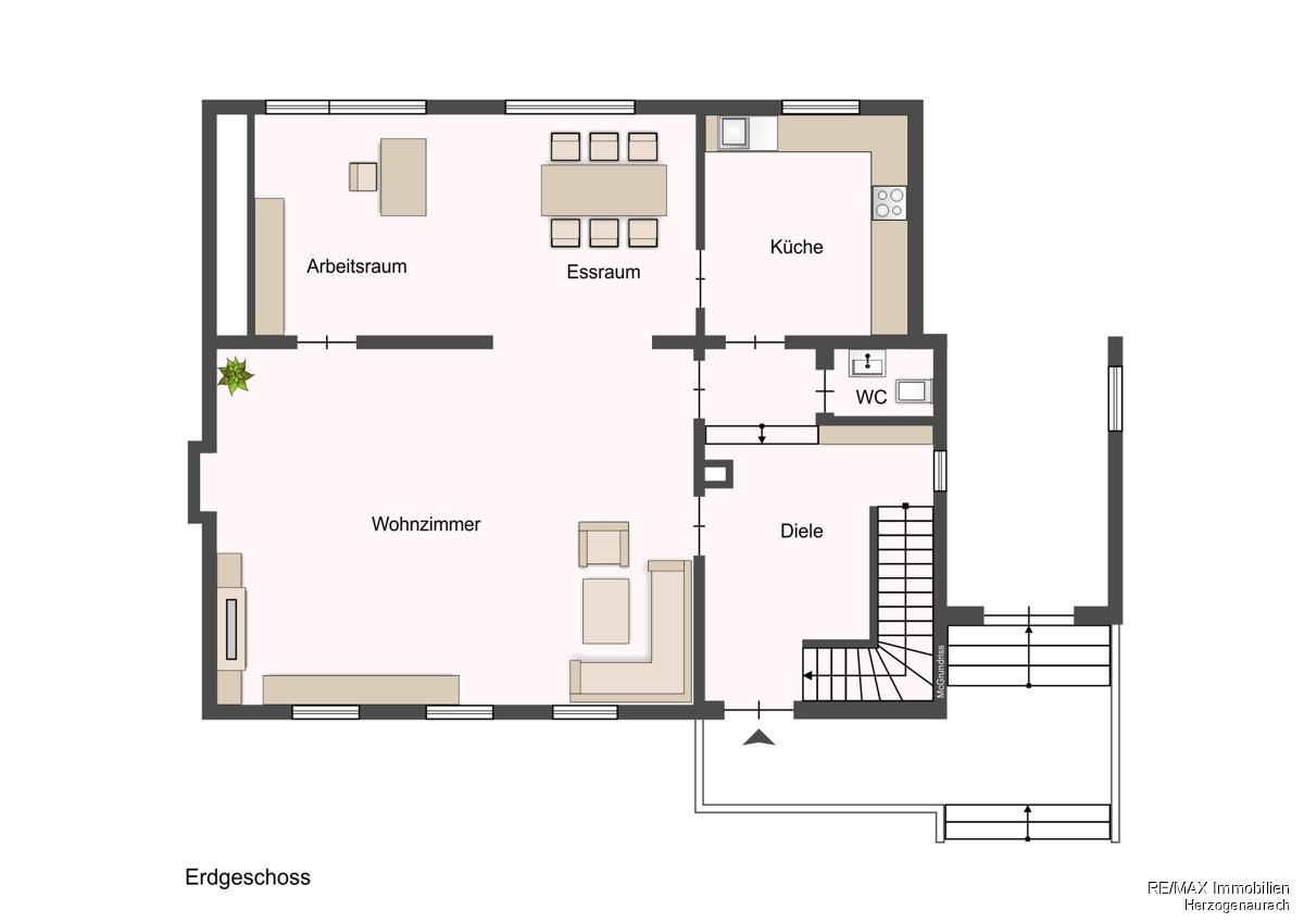 Bei Erwerb verpflichtet sich der Käufer an RE/MAX Solutions, Christine Vogel, eine Maklerprovision in Höhe von 3,57 % (inkl. MwSt.) des Kaufpreises nach notariellem Vertragsabschluss zu leisten. Durch Ihre weitere Objektanfrage bestätigen Sie die Vereinbarung und Anerkennung dieser Maklerprovision. Ferner beruhen diese Objektdaten auf Angaben des Verkäufers, für die wir keine Gewähr übernehmen.