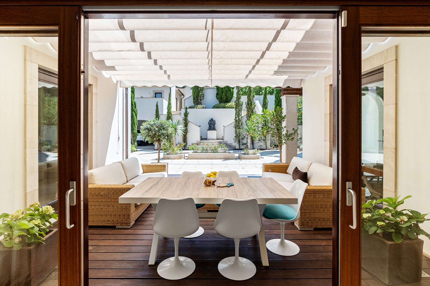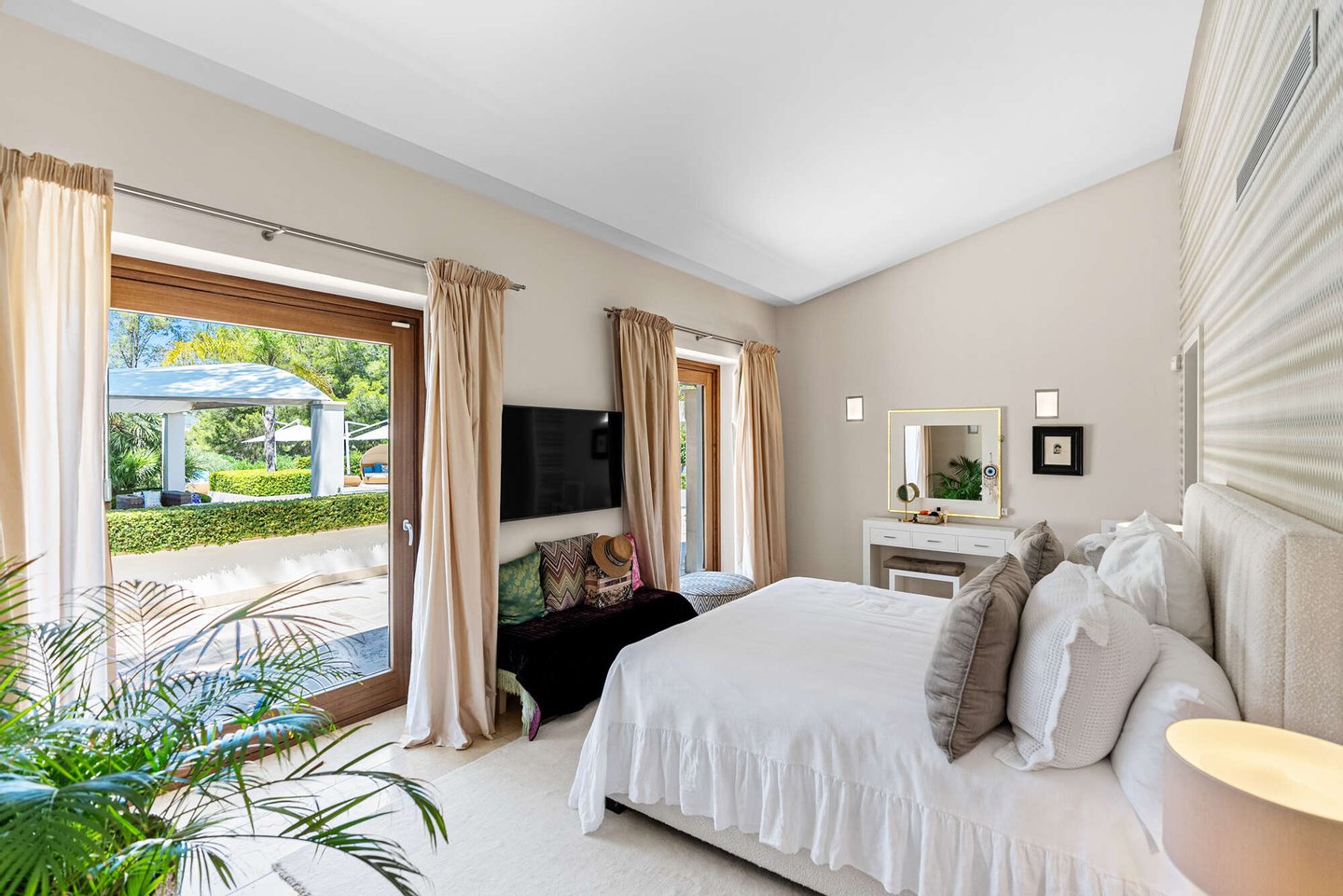 Große Fensterfronten fluten die Räume mit Licht und verbinden das Interieur nahtlos mit der mediterranen Umgebung. Jeder Winkel zeugt von Liebe zum Detail, jedes Material wurde mit Bedacht gewählt – ein Zuhause, das höchste Ansprüche an Design und Qualität erfüllt.