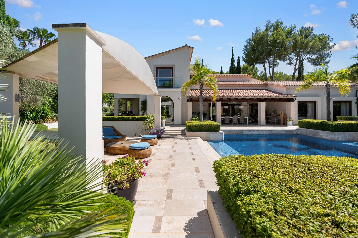 In begehrter Lage nahe des Golfplatzes von Santa Ponsa präsentiert sich dieses außergewöhnliche Anwesen – ein Rückzugsort der Extraklasse, der selbst auf Mallorca seinesgleichen sucht.