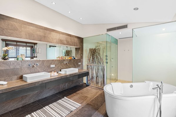 Das im Jahr 2006 erbaute Anwesen beeindruckt durch seine zeitlose Architektur und eine durchdachte Raumplanung, die Großzügigkeit und Leichtigkeit vereint. Sieben großzügige Schlafzimmer und acht stilvoll ausgestattete Badezimmer schaffen ein Ambiente, das gleichermaßen repräsentativ wie wohnlich ist.