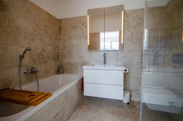 Drei Schlafzimmer, jedes mit eigenem Badezimmer, bieten Komfort auf höchstem Niveau – ideal für Familie, Gäste oder Menschen, die das Besondere schätzen. Jedes Zimmer öffnet sich zur Natur, jedes Detail ist durchdacht, jedes Material von ausgesuchter Qualität. Dank der durchdachten Architektur und Ausrichtung genießt man hier absolute Uneinsehbarkeit und ein Höchstmaß an Privatsphäre – ein Ort, an dem man ganz für sich sein kann.