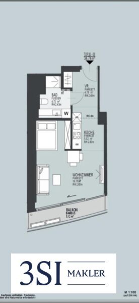 Diese stilvolle 35 m² große Wohnung verfügt über eine großzügige Raumhöhe von rund 2,80m, einer Freifläche von insgesamt 5 m² sowie einer Smart Living Technology Ausstattung und teilt sich wie folgt auf: