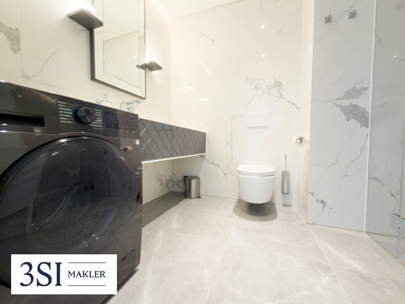 - Badezimmer mit Dusche, Toilette, moderne Waschmaschiene ist vorhanden