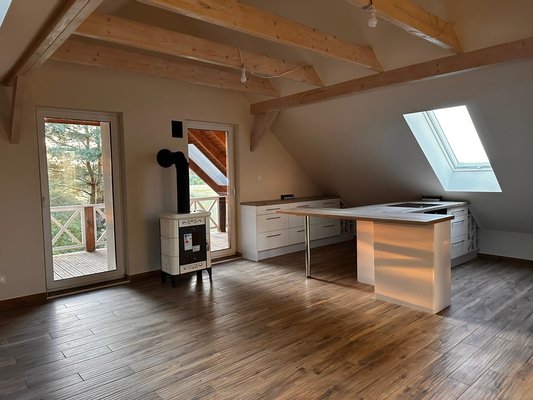 Das 2.148 m² große Grundstück liegt im Gardna Park nahe dem Südufer des Jezioro Gardno (Gardersee) und grenzt direkt an den malerischen Slowinski Nationalpark. Durch die Lage in erster Reihe wird der malerische Ausblick auch in Zukunft nicht durch Bauvorhaben gestört sein.m Mit einer Entfernung von ca. 750 Metern Luftlinie zum See, ist dieser fußläufig erreichbar. Im gesamten Park und Umgebung lassen sich weiße Reetdachhäuser wie dieses finden. Rundherum gibt es im Bezug auf Kultur und Natur eine Menge zu bieten. Zahlreiche Binnenflüsse und Schifffahrtsseen umgeben das Haus. Aber auch zum wandern und erholen eignet sich der Nationalpark prima. Das Haus umfasst zwei Wohnungen. Im Erdgeschoss eine 3-Zimmer Wohnung mit ca. 100 m² Wohnfläche und im Dachgeschoss eine 80 m² 2-Zimmer Wohnung. Beide Wohnungen verfügen über eine Fußbodenheizung und Kaminöfen sorgen für gemütliche Abende.