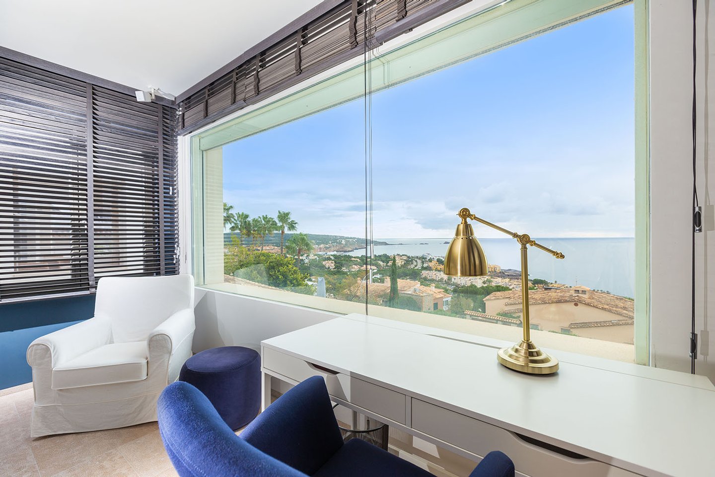 Erhöht gelegen in einer der begehrtesten Urbanisationen im Südwesten der Insel, bietet die Villa eine idyllische Ruhe, nur wenige Fahrminuten von mehreren Golfplätzen, dem Yachthafen Port Adriano und dem Ortszentrum von Santa Ponsa mit seinen zahlreichen Geschäften, Restaurants und einem großen Sandstrand entfernt. Weitere charmante Küstenorte und Yachthäfen sind ebenfalls in wenigen Autominuten erreichbar. Bis Palma und zum Flughafen sind es 20 bzw. 30 Minuten.