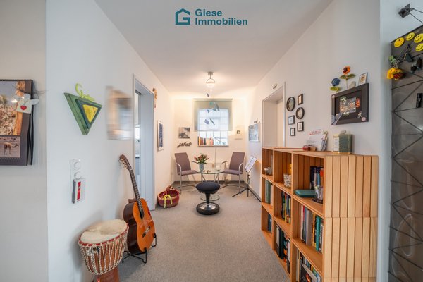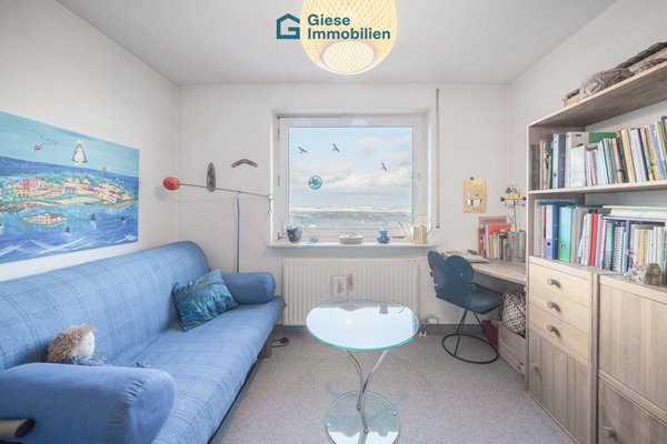 Angrenzend an den Wohnbereich liegt ein Zimmer, das sich flexibel als Kinderzimmer, Arbeitszimmer oder Gästezimmer nutzen lässt.