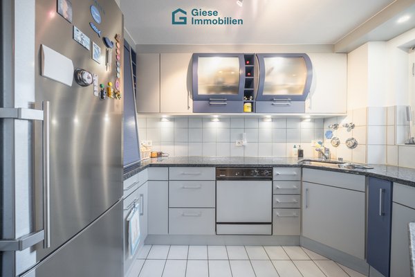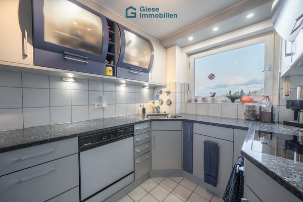Die Küche ist funktional geplant und mit passgenauen Einbaumöbeln ausgestattet. Einige Elektrogeräte können nach eigenem Geschmack ergänzt werden.
