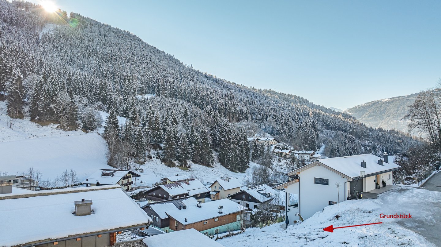 Unweit des Zeller Sees auf ca. 870 Meter Seehöhe ist das 618 m² große Baugrundstück am Ende einer Sackgasse in leichter Hanglage gelegen.
