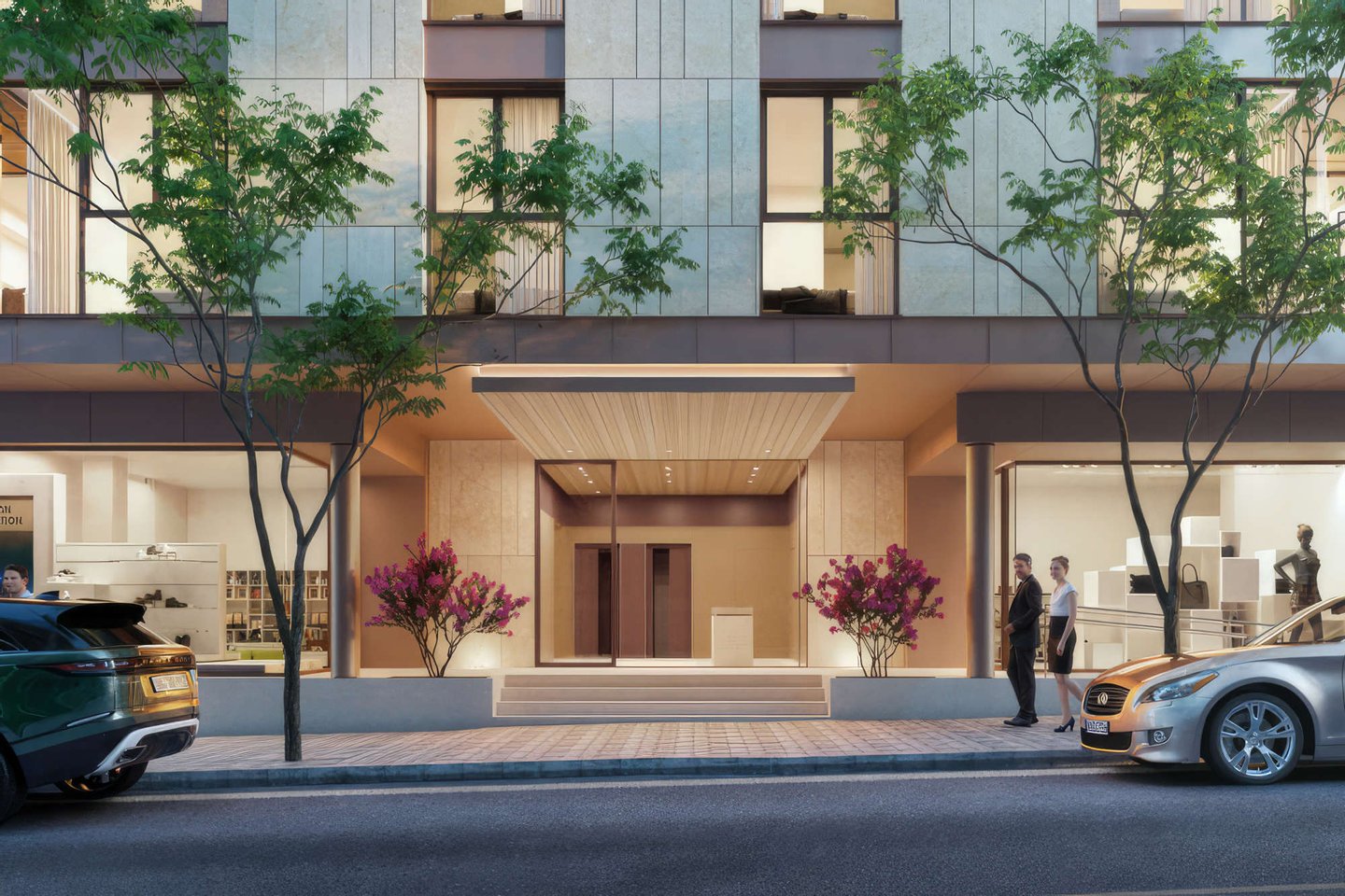 * Einladender und repräsentativer Eingangsbereich zwischen zwei exklusiven Stores