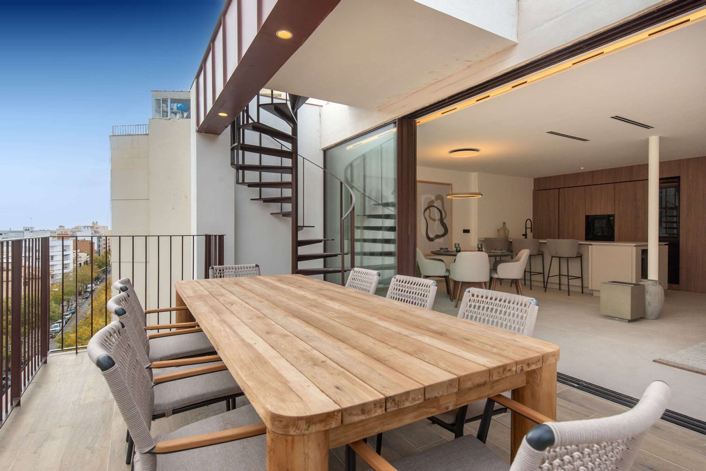 Diese luxuriöse Penthousewohnung befindet sich in erstklassiger Lage im Santa Catalina Viertel von Palma und bietet einen seitlichen Meerblick sowie einen traumhaftem Blick Richtung Son Vida mit dem Castell Bellver. Mit einer konstruierten Fläche von 129 m², drei Schlafzimmern, zwei Badezimmern, eine traumhafte Küche, einem geräumigen Wohn- und Esszimmer sowie einer beeindruckenden 77 m² großen Dachterrasse erfüllt sie höchste Ansprüche.
