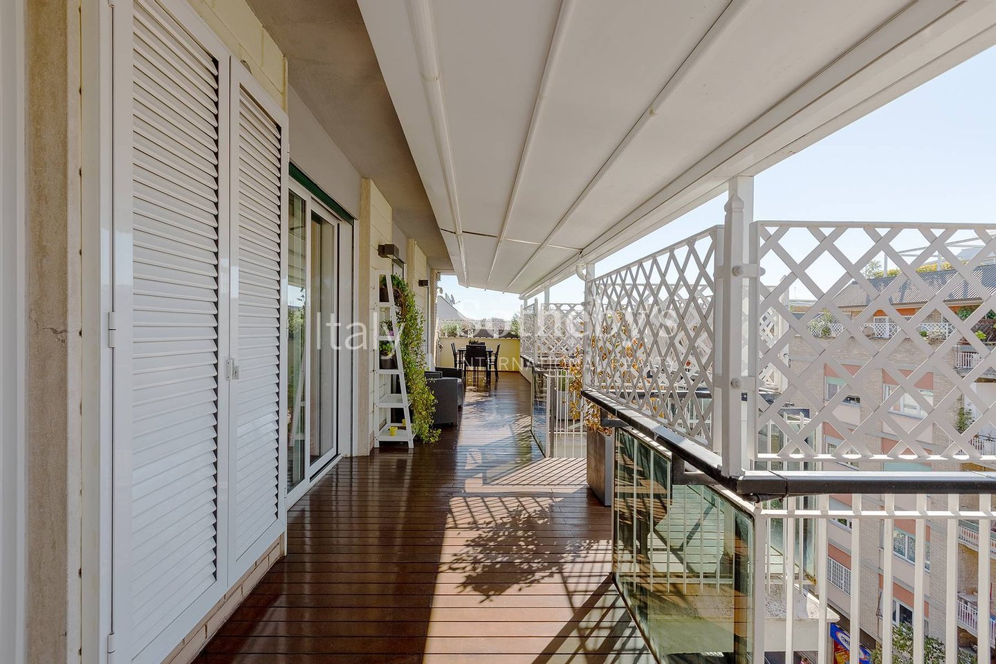 Die Wohnung liegt im obersten Stockwerk eines eleganten Gebäudes mit Aufzug. Die Außenfläche von ca. 30 m² verteilt sich auf eine großzügige, bewohnbare Terrasse und einen Balkon.
