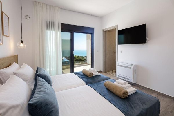 Dieses schöne Haus bietet einen atemberaubenden Blick auf das Meer sowie die Landschaft und die Berge und verfügt über 4 geräumige Schlafzimmer mit Doppelbetten, jedes mit eigenem Bad.