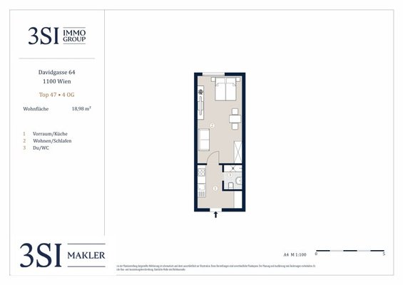 Willkommen in dieser liebevoll gestalteten knapp 19 m² großen Wohnung im 4.Stock eines gepflegten Altbaus. Der gut geschnittene, kompakte Grundriss sorgt für eine angenehme Raumatmosphäre und bietet alles, was man für ein komfortables Zuhause benötigt.