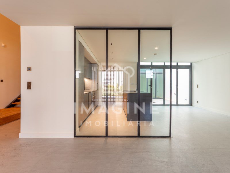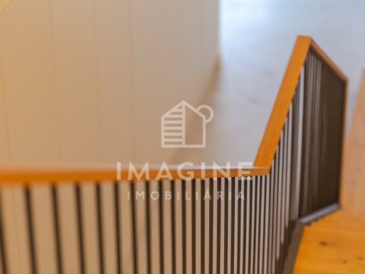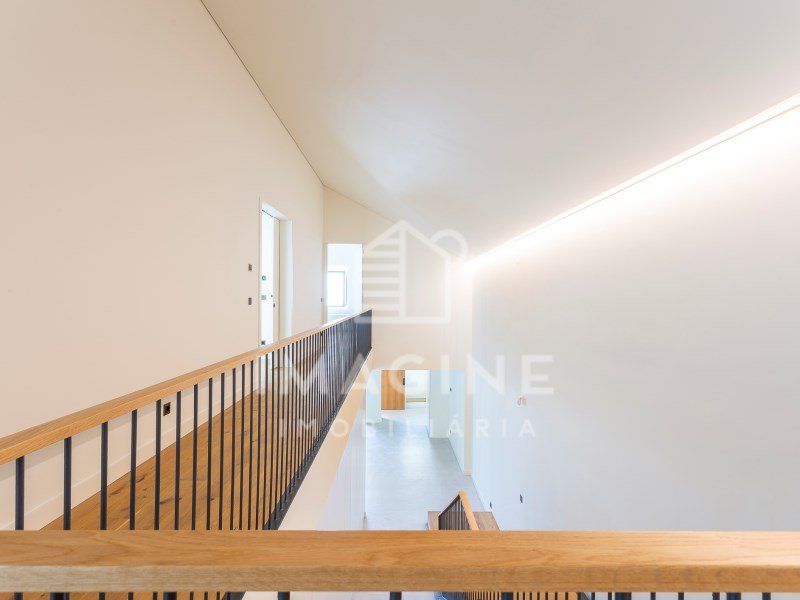 Die Materialien wurden streng ausgewählt: Naturholzböden, Stahlrahmen mit thermischem Schnitt und mattschwarzer Oberfläche, Metalltreppe mit Holzstufen und Fußbodenheizung im gesamten Innenraum. Die Decken mit LED-Beleuchtungsleisten erhöhen den Komfort und die moderne Atmosphäre.