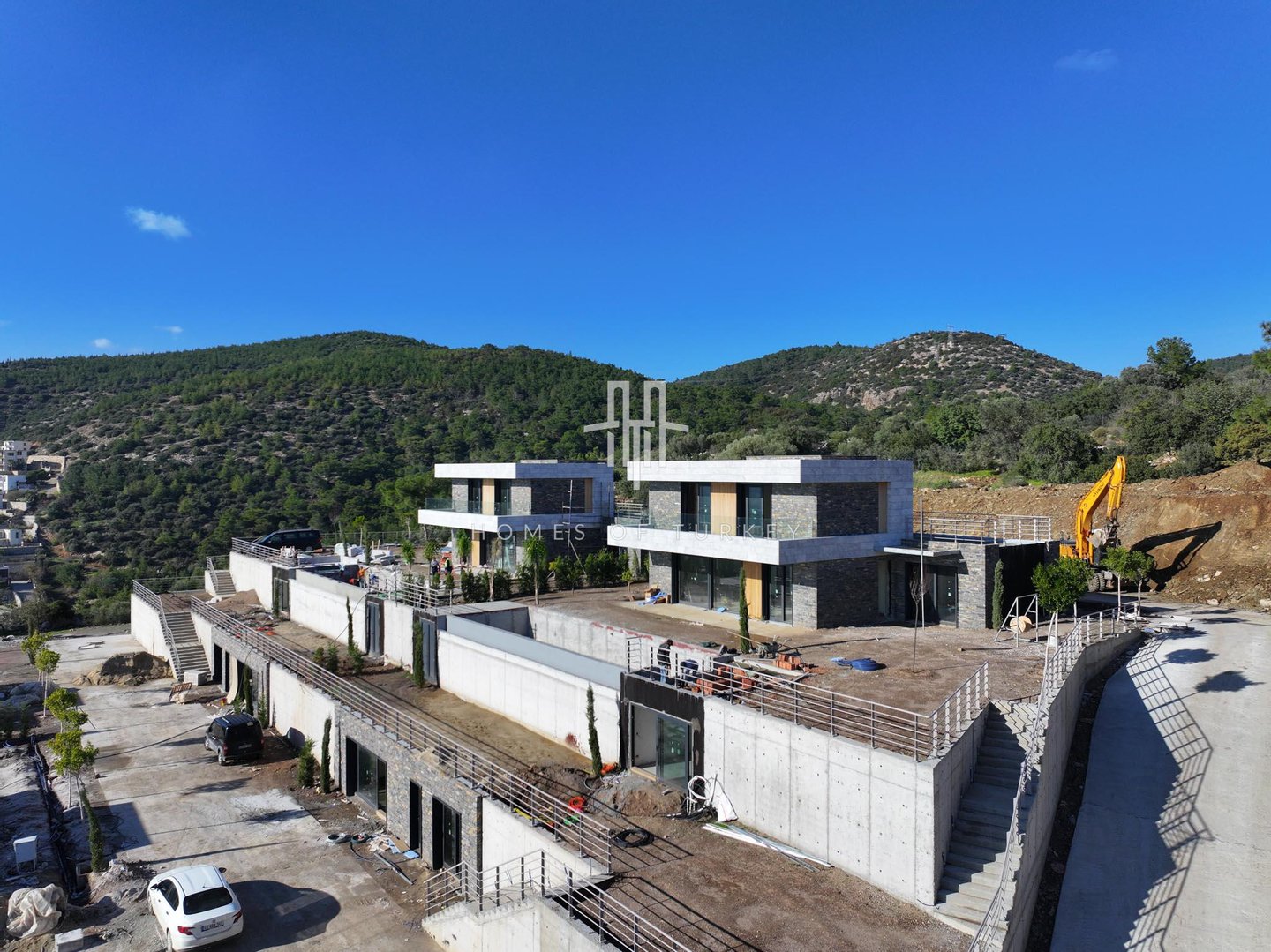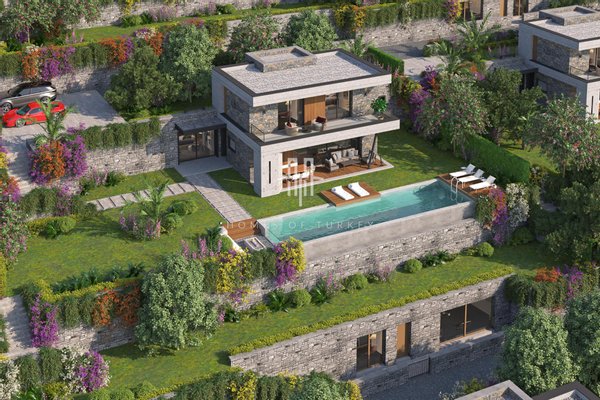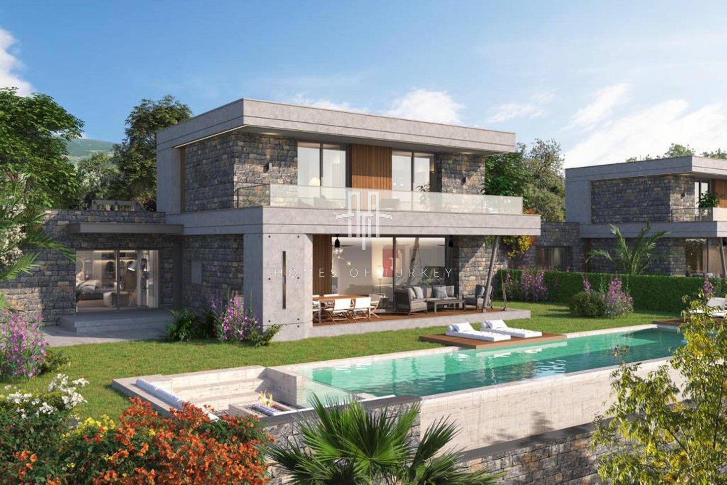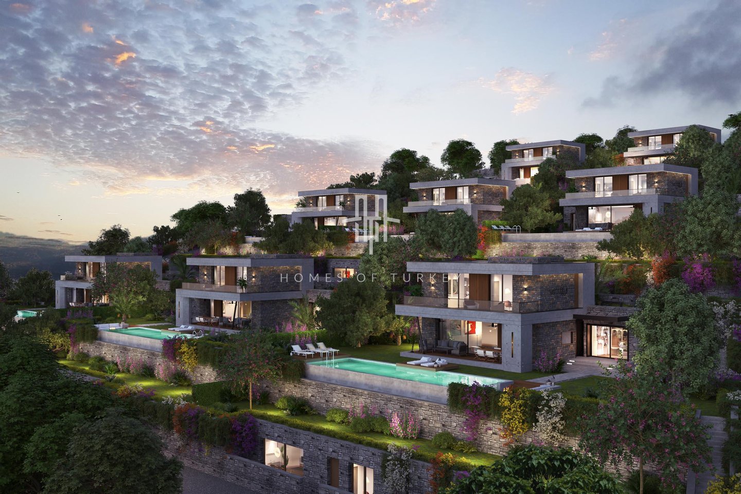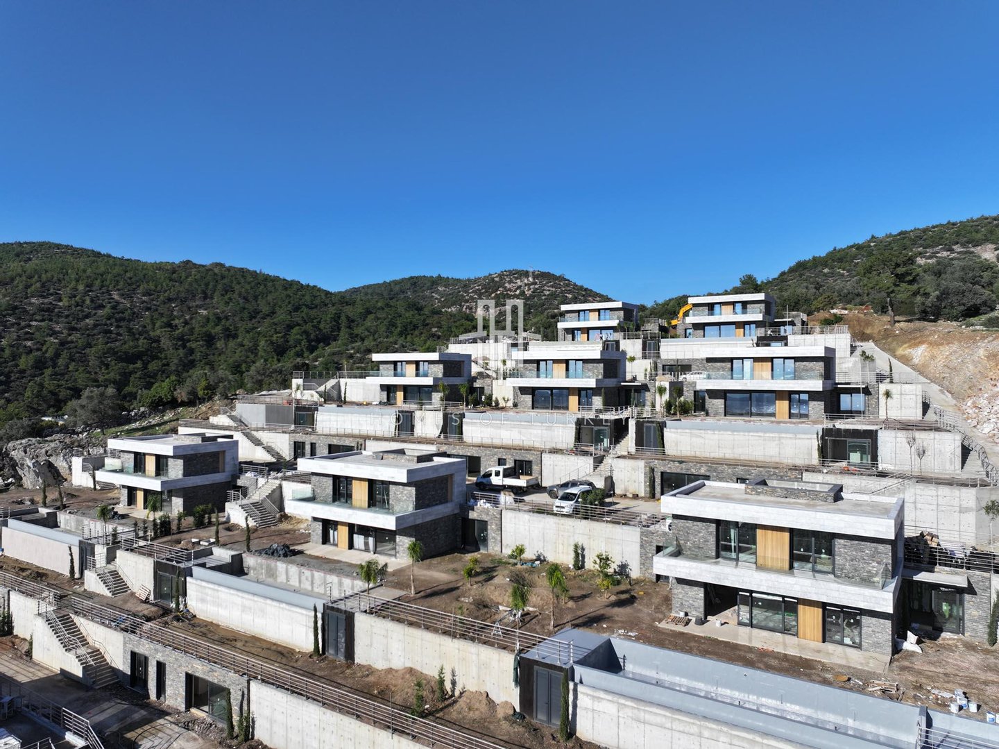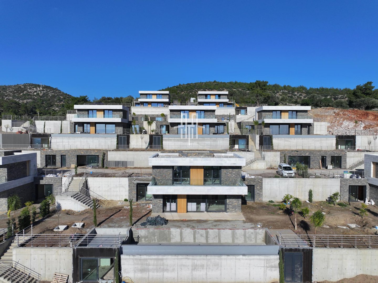 Dieses ultra-luxuriöse Villenprojekt befindet sich in der einzigartigen Lage von Yokuşbaşı, in der Nähe der historischen Reichtümer von Halikarnassos, und ist ein privates Villenprojekt, das von der modernen Architektur und der faszinierenden Atmosphäre der Ägäis inspiriert ist. Diese exklusive Wohngegend umfasst nur 10 freistehende Villen auf einem 9.800 m² großen Grundstück. Jede Villa verfügt über ein 880-980 m² großes Grundstück und bietet viel Wohnraum mit einem 60 m² großen unabhängigen Gästehaus und einem 25 m² großen Fahrerhaus. Alle Zimmer verfügen über ein eigenes Bad und Ankleidezimmer, und zu den Annehmlichkeiten gehören ein unabhängiges Gästehaus, eine Sauna, ein türkisches Bad, ein Fitnessraum, ein privater Pool, geräumige Terrassen, Fußbodenheizung, VRF-Klimaanlage, ein Smart-Home-System und eine Eigentumsurkunde für Eigentumswohnungen. Dieses exklusive, bezugsfertige Projekt erfüllt mit seinem sicheren Komplexkonzept, dem Wassertank und der Generatorinfrastruktur alle Bedürfnisse des modernen Wohnens. Der Panoramablick auf Bodrum und die Insel Kos verbindet den Komfort eines Vier-Jahreszeiten-Urlaubs mit Luxus und Ruhe.