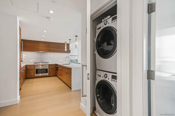 Zweite Chance – Der Verkäufer ist nicht schuld! Erleben Sie luxuriöses Hochhausleben im Pacific Gate im ikonischen Waterfront District der Innenstadt von San Diego. Im 22. Stock gelegen, bietet dieses hellerfüllte Haus mit zwei Schlafzimmern, zwei Bädern und 1.390 Quadratfuß beeindruckende Stadtlichter und funkelnde Ausblicke auf die Bucht, hoch genug, um das Intercontinental Hotel zu überqueren, während es den Charme des historischen Santa Fe Depots einfängt. Das offene Layout wird durch individuelle Verbesserungen bereichert, darunter ein elegantes, modernes Unterhaltungszentrum im Wohnzimmer und ein geräumiger begehbarer Kleiderschrank in der Hauptsuite. Der wünschenswerte Grundriss mit geteilten Schlafzimmern sorgt für Privatsphäre, während weitläufige Fenster die atemberaubenden Ausblicke einrahmen. Genießen Sie das milde Klima San Diegos von Ihrer privaten überdachten Terrasse, perfekt für morgendlichen Kaffee oder abendliche Sonnenuntergänge. Die Bewohner von Pacific Gate genießen Resort-ähnliche Annehmlichkeiten wie eine private Yacht-Share, eine luxuriöse Autoflotte, einen Chef-Concierge, eine Gästesuite, eine Bewohnerlounge, ein hochmodernes Fitnesscenter mit Sauna und Dampfbad, ein Promi-Chef-Restaurant vor Ort und vieles mehr! Das ist die perfekte Mischung aus Luxus, Komfort und erstklassigem Komfort.