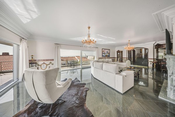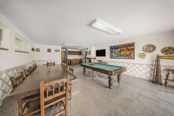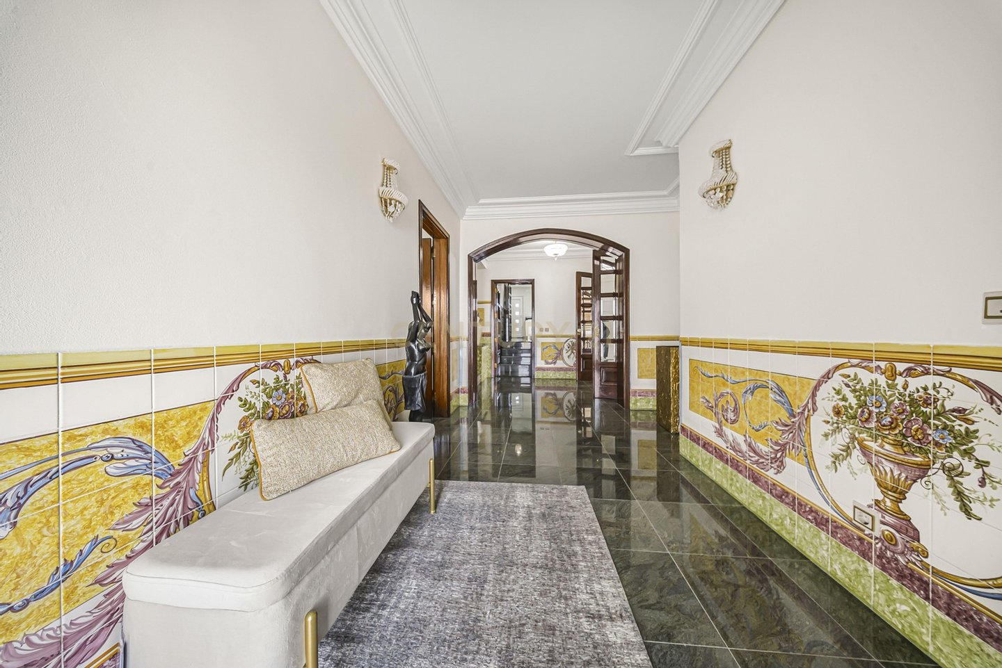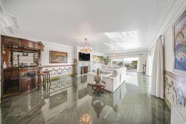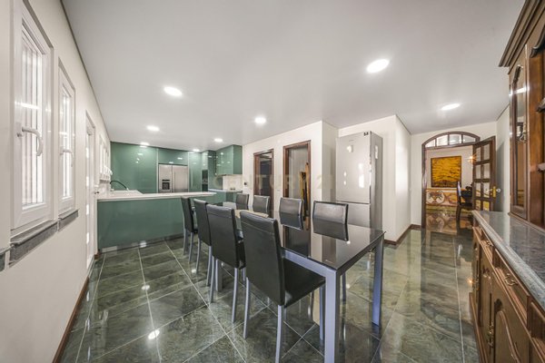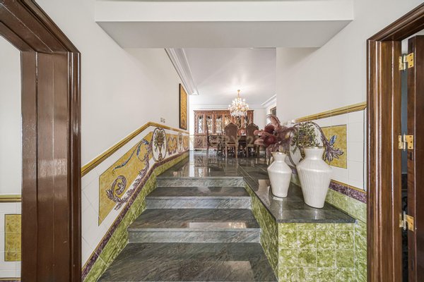 Im ersten Stock befinden sich ein Flur, ein großer Raum von 57,60 m2 mit zwei großen Fenstern, ein Esszimmer von 26,80 m2, ein Büro von 14,70 m2, zwei Toiletten, ein Dienstmädchenzimmer von 9 m2, eine Speisekammer und eine große Küche sowie eine Waschküche. Der grüne brasilianische Marmorboden verleiht ihm eine elegante und raffinierte Note.