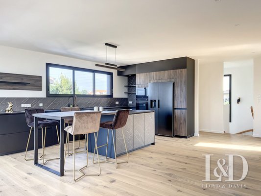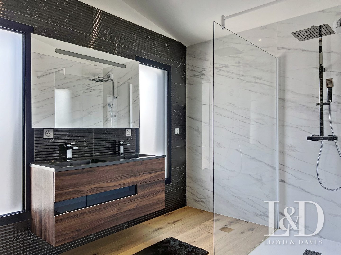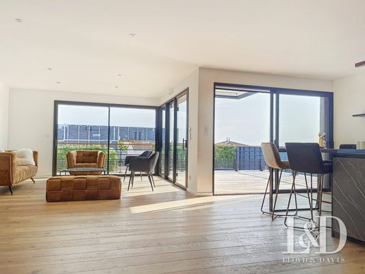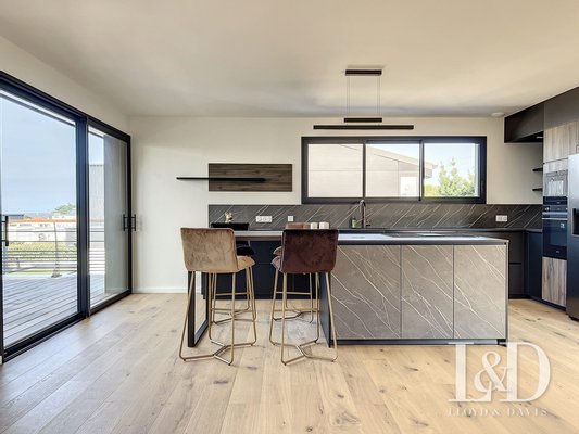 Diese im Jahr 2023 erbaute Villa mit einer entschieden zeitgenössischen Architektur befindet sich 200 m vom Strand von Pontaillac entfernt und bietet Ihnen ein außergewöhnliches Wohnumfeld. Im Erdgeschoss verwandelt sich eine große Eingangshalle in ein Wohnzimmer, das dank seiner Erkerfenster mit Blick auf die Terrasse und das Swim Spa/Jacuzzi vollständig nach außen offen ist. Auf derselben Ebene befindet sich eine Suite mit Schlafzimmer, Ankleidezimmer und eigenem Duschbad, dann zwei weitere komfortable Schlafzimmer mit Schränken, die sich ein Duschbad teilen. Eine Waschküche und eine Garage von 46 m² vervollständigen diese Ebene. Im Obergeschoss, erreichbar über die Treppe oder mit dem Aufzug, finden Sie ein herrliches Wohnzimmer von mehr als 65 m², bestehend aus dem Wohnzimmer, dem Wohnzimmer und der offenen Einbauküche, die sich auf eine 26 m² große Terrasse mit Meerblick öffnet. Ebenfalls im ersten Stock befindet sich die Master-Suite mit Schlafzimmer, Ankleidezimmer und Duschbad sowie für die Verwaltung eine Waschküche/Abstellraum. Sorgfältig ausgewählte Materialien, erstklassige Dienstleistungen, eine privilegierte Umgebung. Inklusive Maklergebühren in Höhe von 2,86% TTC, die vom Käufer zu zahlen sind. Preis ohne Gebühren 1.750.000 €. Energieklasse A, Klimaklasse A Geschätzter durchschnittlicher jährlicher Energieaufwand bei normaler Nutzung, basierend auf den Energiepreisen für das Jahr 2021: zwischen 580,00 € und 830,00 €. Informationen zu den Risiken, denen diese Immobilie ausgesetzt ist, finden Sie auf der Website von Géorisques: georisques.gouv.fr. Ihr Berater von LLOYD & DAVIS: Valerie GUILLEMONT Handelsvertreterin (Einzelunternehmen) RSAC 382 890 937 Saintes RCP RD01704055S AIG