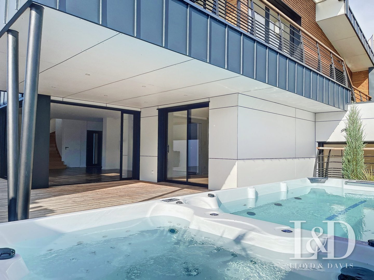 Diese im Jahr 2023 erbaute Villa mit einer entschieden zeitgenössischen Architektur befindet sich 200 m vom Strand von Pontaillac entfernt und bietet Ihnen ein außergewöhnliches Wohnumfeld. Im Erdgeschoss verwandelt sich eine große Eingangshalle in