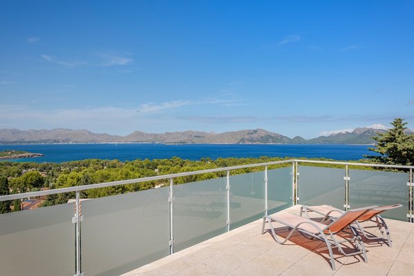 Diese Villa in Alcudia befindet sich auf dem höchsten Punkt der Gegend von Bonaire und bietet einen weiten Blick über die Bucht von Pollensa. Mit ihrer begehrten Touristenvermietungslizenz verbindet die Immobilie luxuriöses Wohnen mit einer hohen