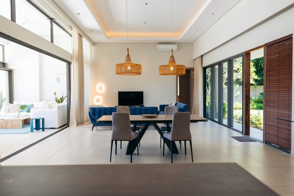Mit einer Wohnfläche von 304 m² bietet diese Villa großzügige, lichtdurchflutete Räume, die sich durch große Schiebetüren vollständig zur privaten Poolterrasse und zum tropisch angelegten Garten öffnen.