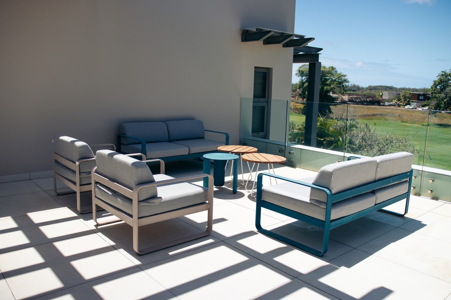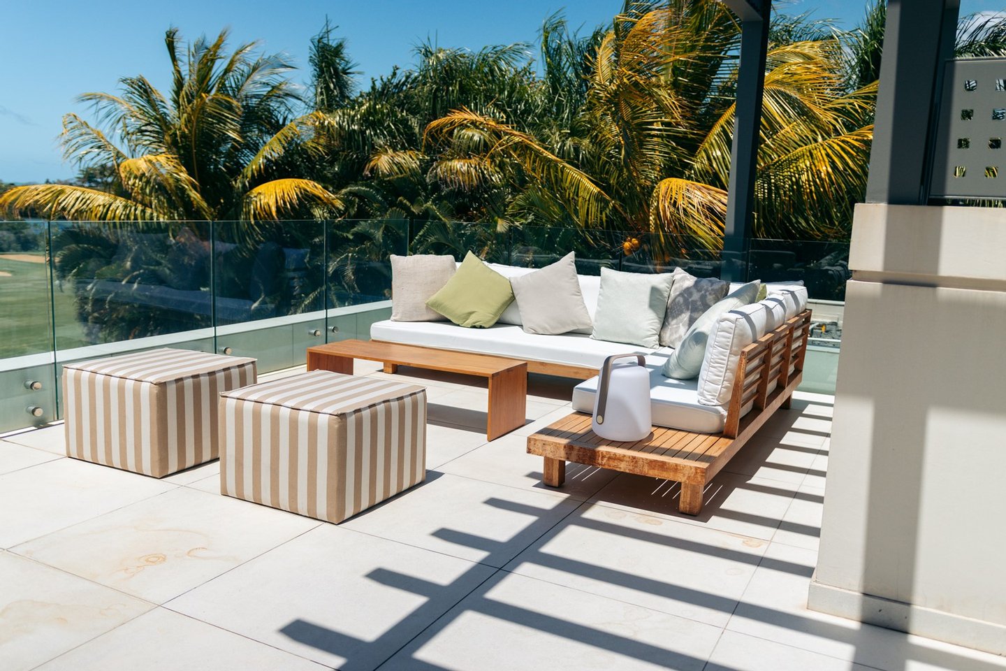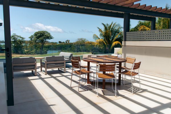 Ein besonderes Highlight ist die Dachterrasse, der ideale Ort, um den Sonnenuntergang über den Bambou-Bergen zu genießen – ein täglicher Luxusmoment im Leben auf Anahita.