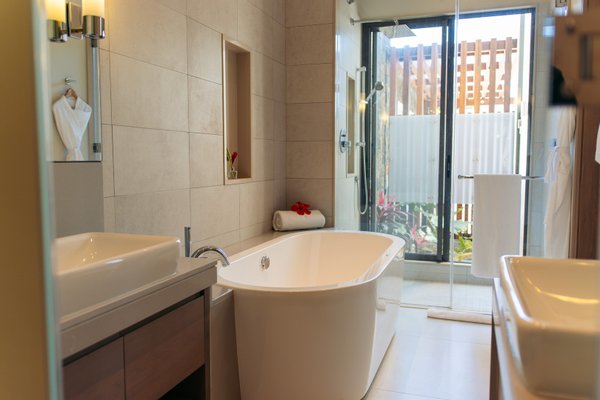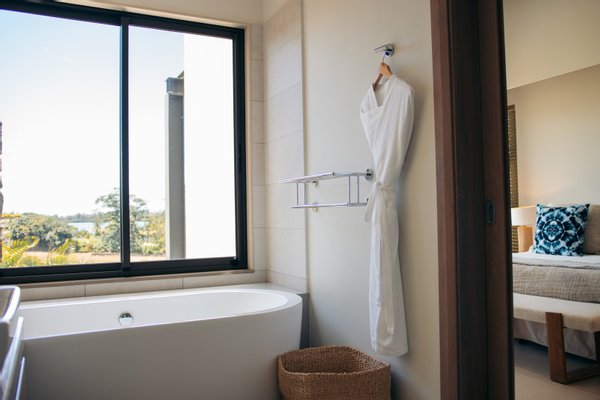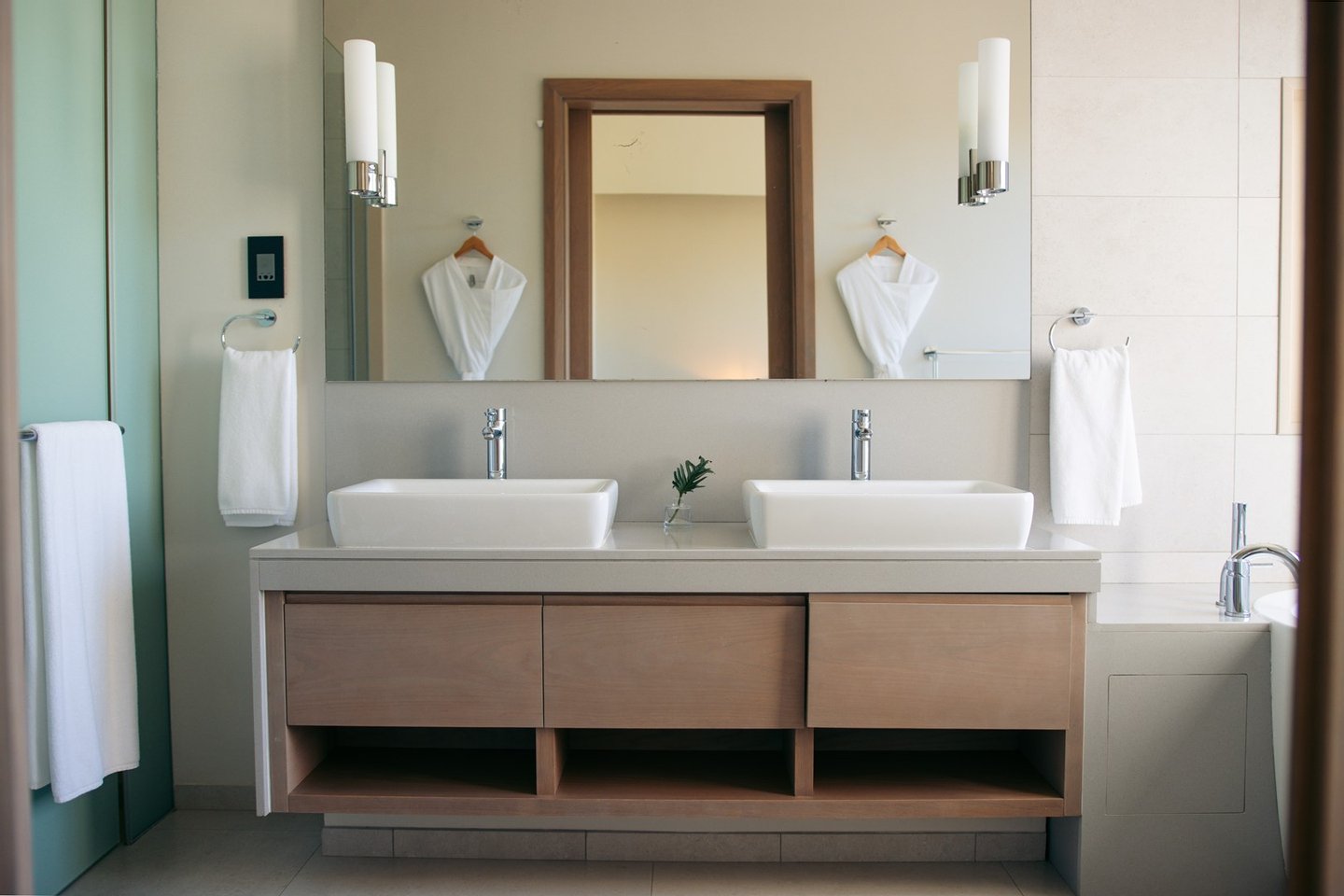 Zwei der Suiten bieten geräumige, elegant gestaltete Badezimmer mit edlen Materialien und zeitlosem Design.