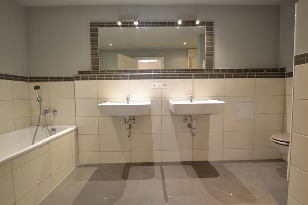 - modernes Bad mit Wanne und ebenerdiger Dusche