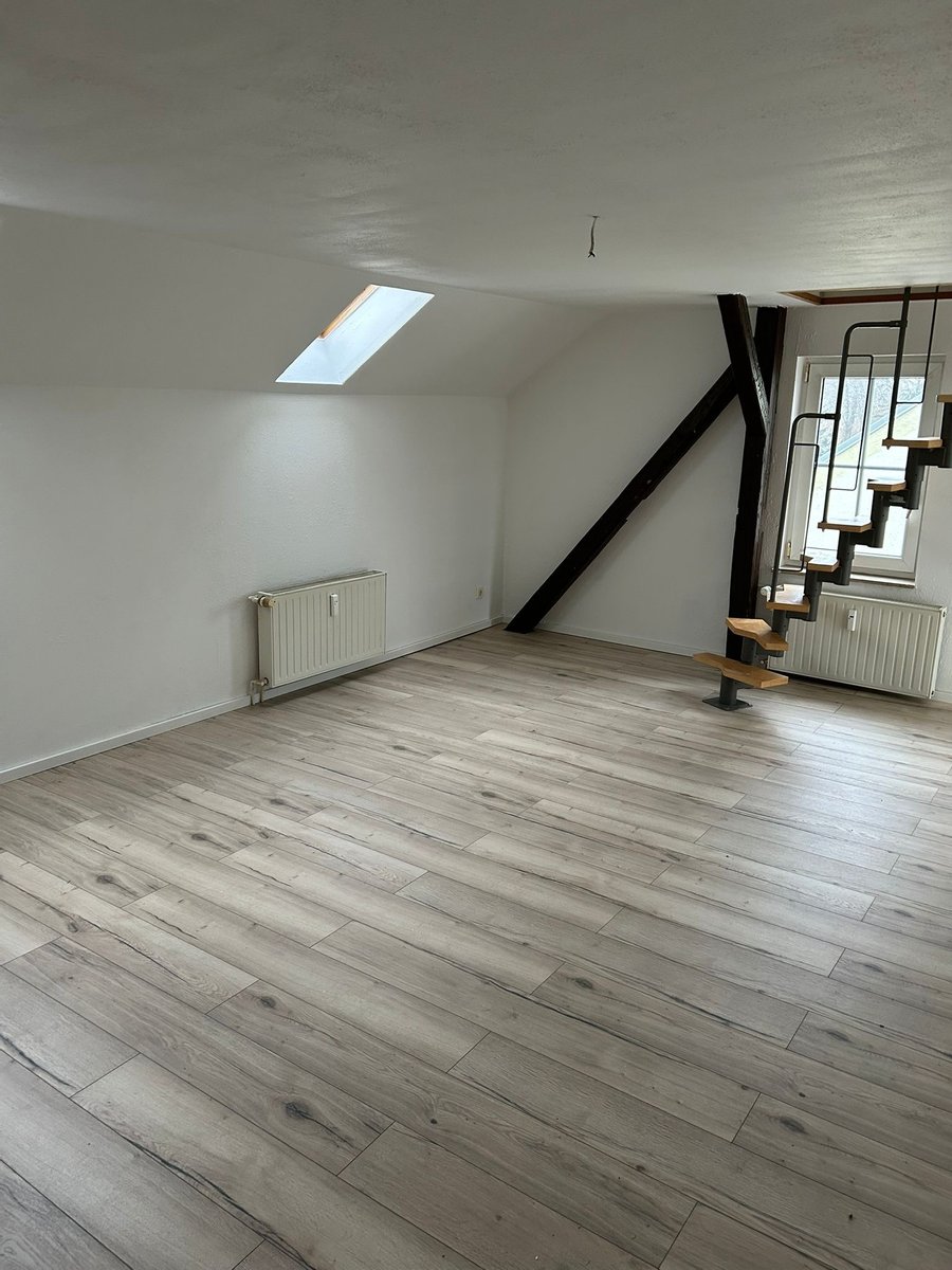 Das Anwesen wurde in den 1990er Jahren umfangreich renoviert. Die angebotene Wohnung im Dachgeschoss verteilt sich auf 2 Ebenen und ca. 100 m² und wird Sie begeistern. Auf Ebene 1 befinden sich das Wohnzimmer mit Zugang auf den Balkon, eine großzügige Küche, zwei Schlafräume sowie ein Badezimmer. Auf Ebene 2, die vom Wohnzimmer aus erreichbar ist, befindet sich ein Studiozimmer. Zur Wohnung gehört weiterhin ein Kellerraum. Eine große Waschküche mit Trockenraum befindet sich ebenfalls im Keller. Ab dem 1. Februar 2025 wäre die Wohnung bezugsfrei. Parkmöglichkeiten stehen vor dem Haus ausreichend zur Verfügung.