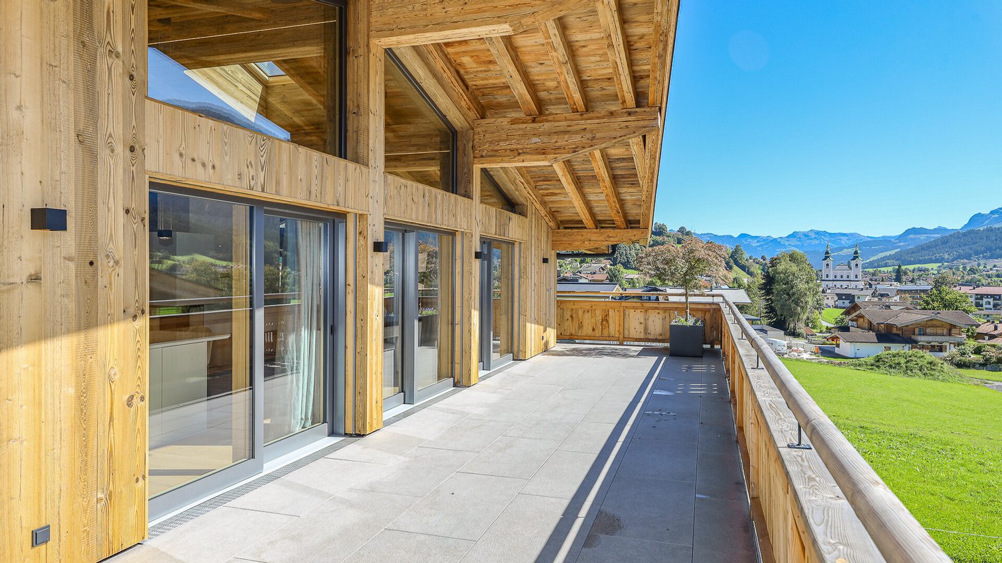 Dank der hervorragenden Lage und Ausrichtung am Sonnberg bietet sich ein 360° Panoramablick vom Kitzbüheler Horn hinweg über das Brixenthal bis hin zur Hohen Salve. Großzügige Balkon- und Terrassenflächen komplettieren das fantastische Angebot.