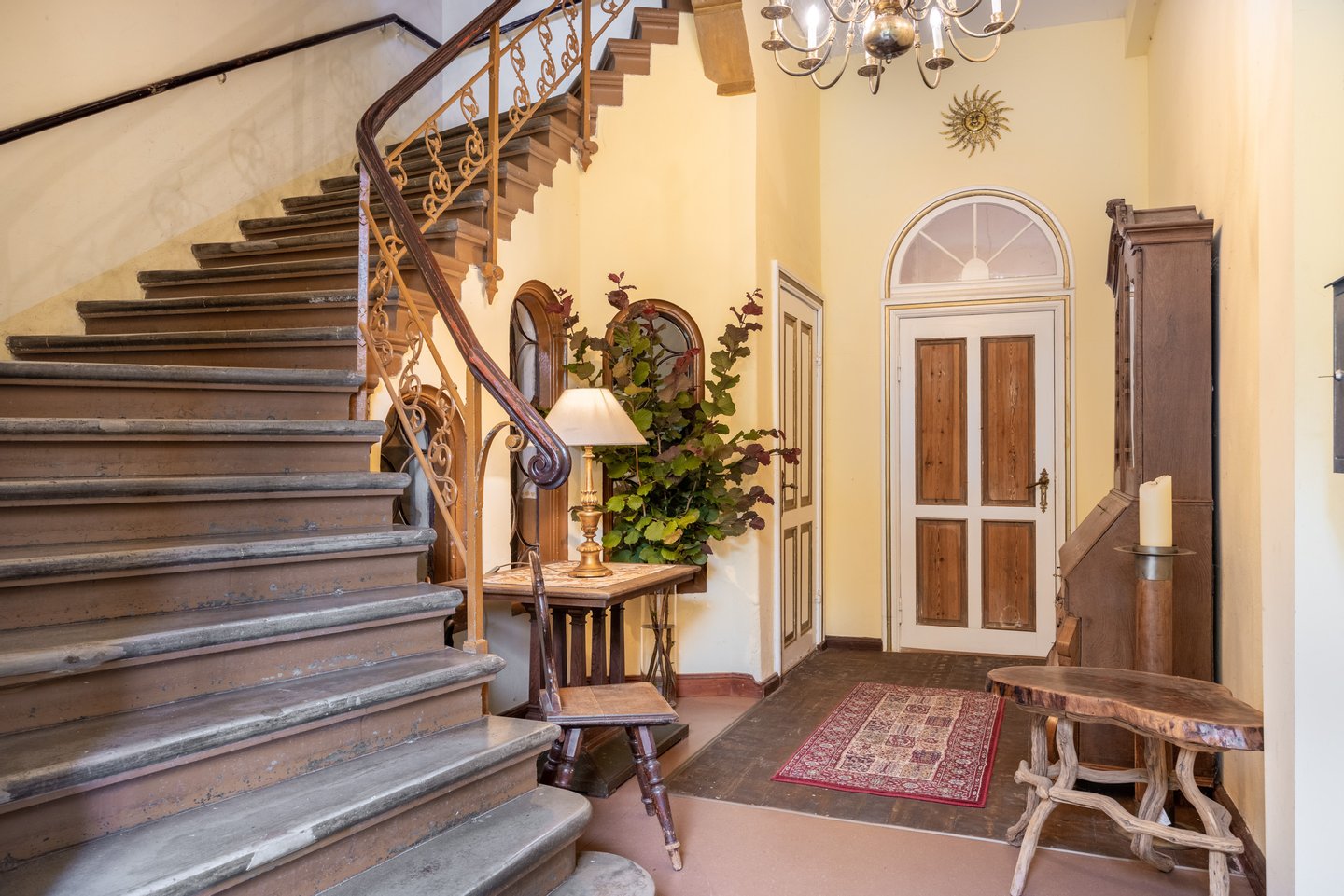 Bauzeitliche Ausstattungen teilweise vorhanden und denkmalpflegerisch erhalten.