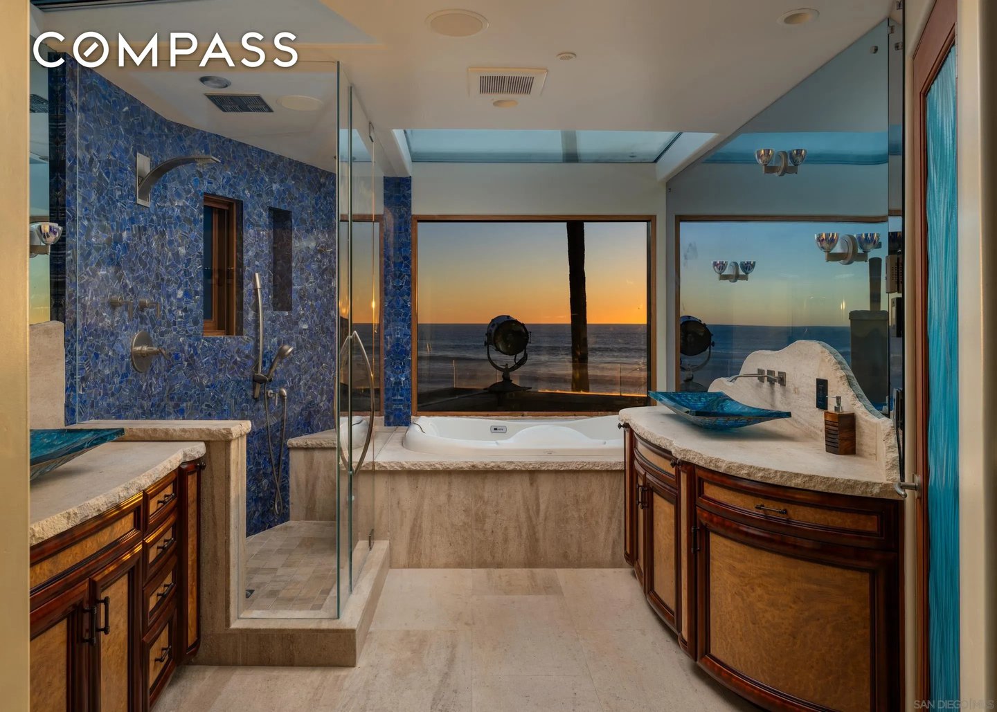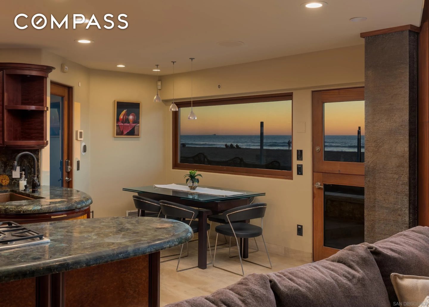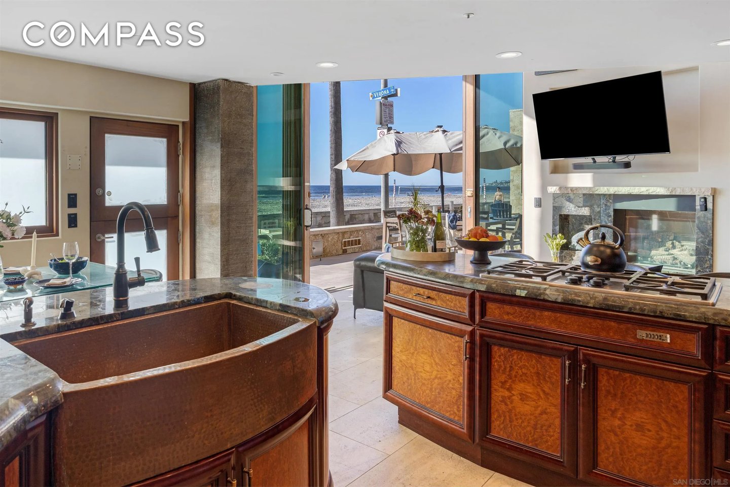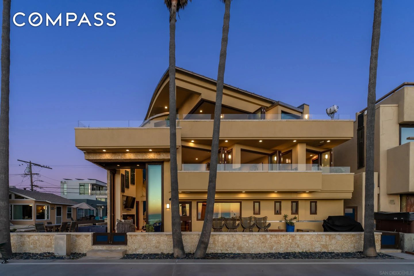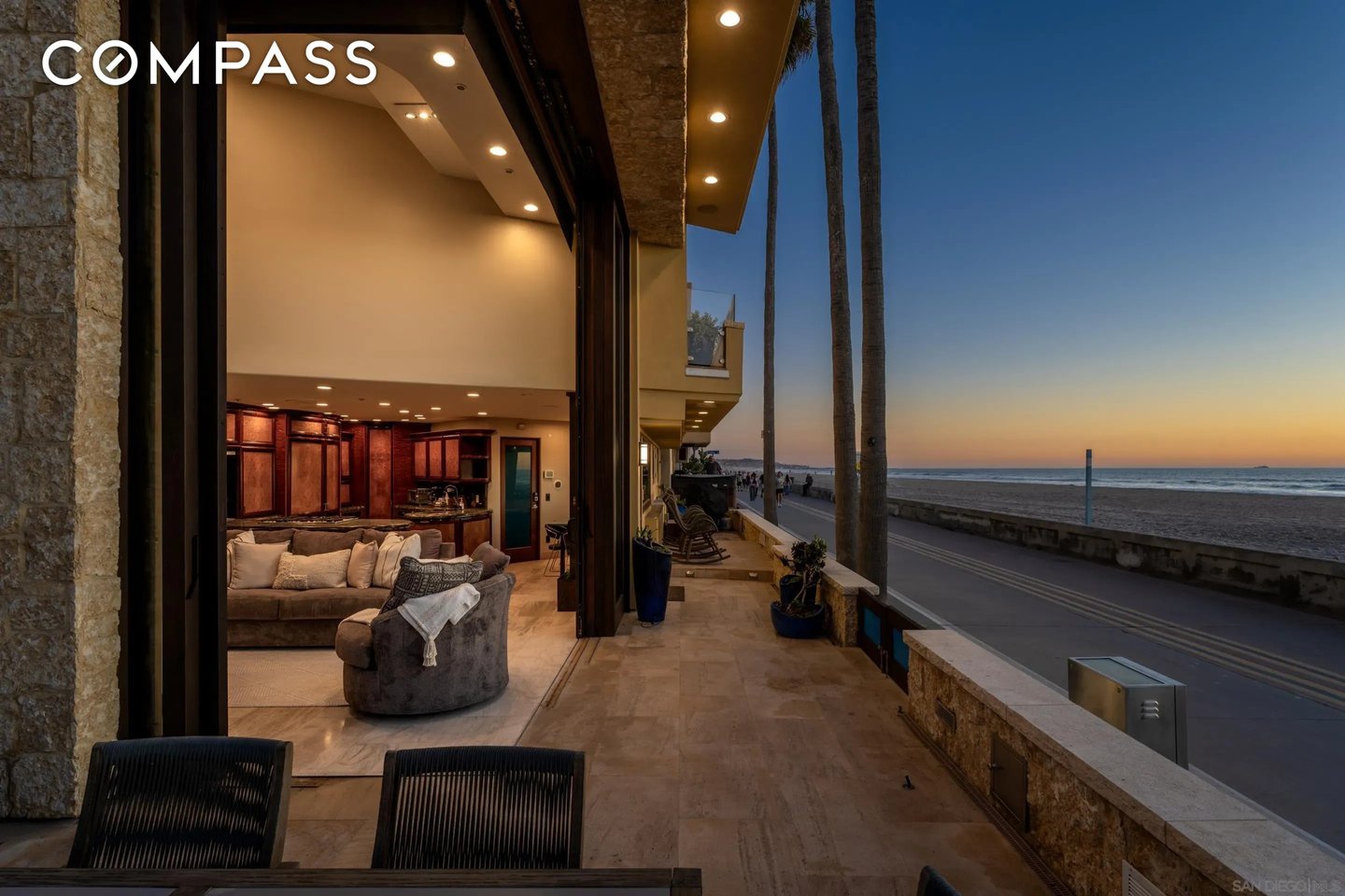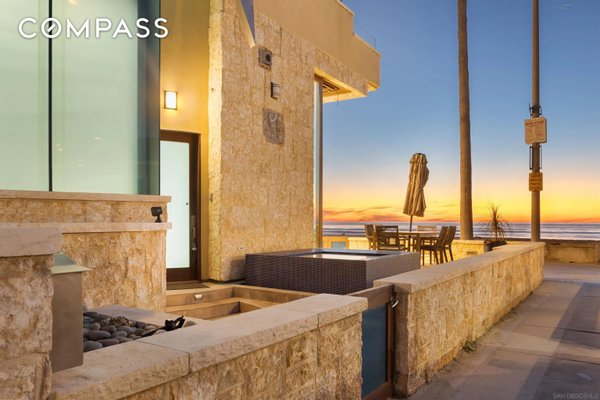 Willkommen in diesem selten verfügbaren, sehr begehrten Anwesen am Strand von North Mission. Dieses seltene Küstenjuwel befindet sich auf einem begehrten Eckgrundstück mit einer weitläufigen 60-Fuß-Fassade und bietet einen atemberaubenden Panoramablick auf das Meer auf dem Sand. Auf einer Fläche von 2.354 m² verfügt diese Residenz über 4 Schlafzimmer und 5 Badezimmer, die sorgfältig für luxuriöses Wohnen und mühelose Unterhaltung konzipiert wurden. Hauptmerkmale: Nahtloses Wohnen im Innen- und Außenbereich: Vom Boden bis zur Decke voluminöse stapelbare 13-Zoll-Glastüren Ein benutzerdefiniertes Radius-Design fließt durch die geschwungenen Decken, die sich zu einer geräumigen Terrasse am Meer mit einem Infinity-Edge-Spa öffnen, perfekt, um Sonnenuntergänge über dem Pazifik zu genießen. Das Äußere besteht aus Kalksteinfurnier und glattem Stuck der Stufe 5. Chef's Kitchen: Maßgeschneiderte Mahagonischränke, Arbeitsplatten aus fossilem Kalksteinmarmor und Granit, eine kupferfarbene Bauernhausspüle, Sub-Zero-Edelstahlgeräte und sogar ein eingebautes Acryl-Aquarium schaffen einen wirklich einzigartigen kulinarischen Raum. Eine beleuchtete Treppe mit Glaswänden führt in die Master Suite: Wachen Sie mit den Wellen mit Panoramablick auf das Meer, raumhohen stapelbaren Türen, einer privaten Terrasse und einem Spa-inspirierten Bad-Rückzugsort auf. Dies ist mehr als ein Zuhause - es ist ein Platz in der ersten Reihe des Lebens in North Mission Beach und verbindet Raffinesse, Komfort und den ultimativen Lebensstil an der Küste.