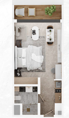 Genießen Sie die Annehmlichkeiten dieses Studio-Apartments, das alles für Ihr Wohlbefinden bereithält.